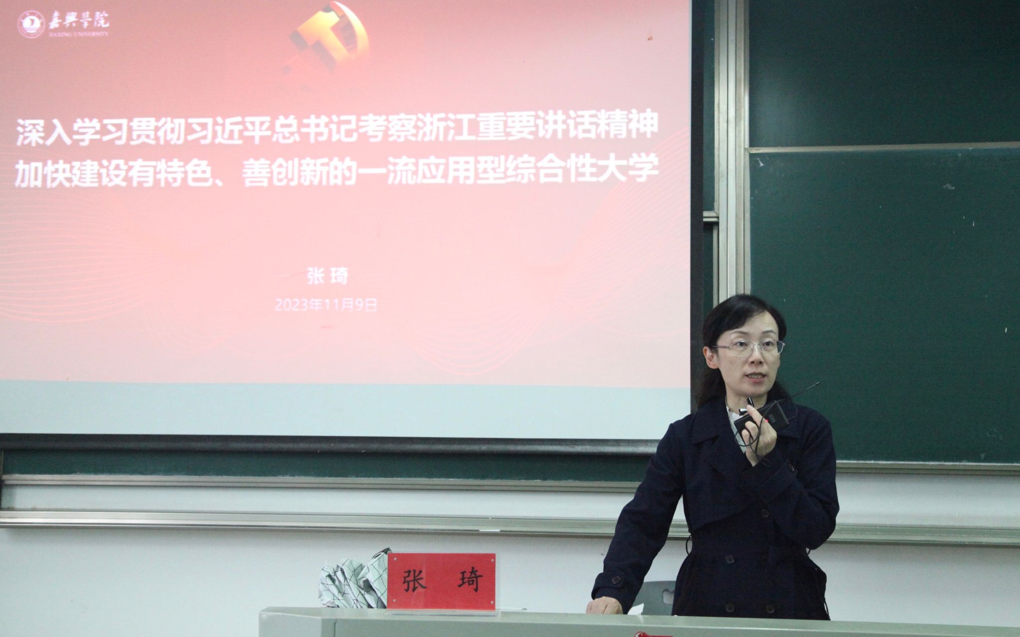 校党委委员、副校长(主持日常工作)张琦到中文av 作学习贯彻习近平总书记考察浙江重要讲话精神宣讲报告