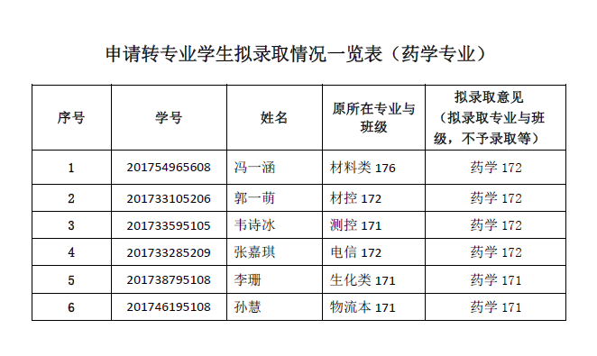 根据学校转专业流程与时间安排及《中文av 全日制普通本科学生转专业实施细则》,现将拟录取同学名单予以公示,公示期从2018年1月4日至6日。