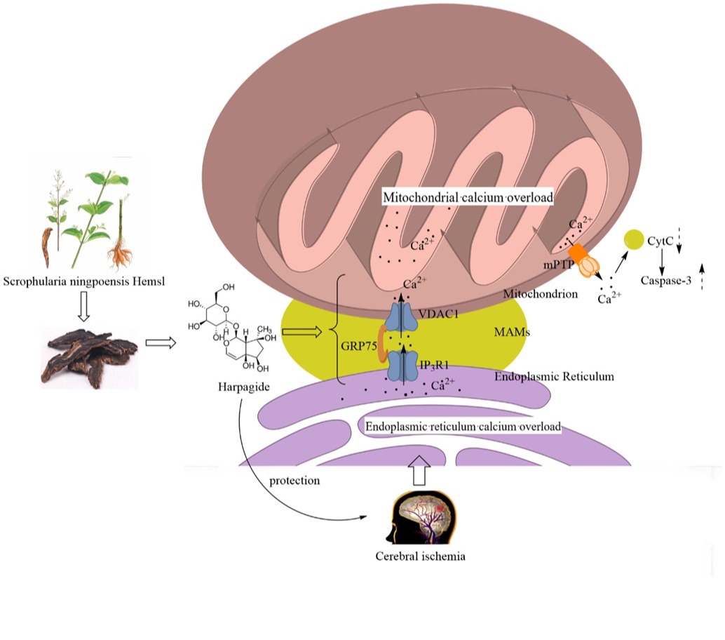 脑卒中每年导致全球约600万人死亡,其中87%为缺血性脑卒中(IS)。当脑血流中断时,神经元会因能量代谢障碍引发钙离子(Ca2+)稳态失衡,进而通过线粒体相关膜(MAMs)——内质网与线粒体间的特殊连接结构——触发凋亡级联反应。传统中药玄参(Radix Scrophulariae)在治疗脑病方面历史悠久,其标志性成分环烯醚萜苷类化合物Harpagide虽已被证实具有神经保护作用,但具体机制尚未阐明。