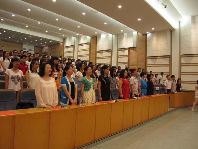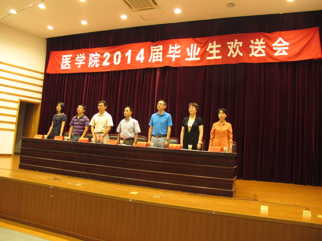 在悠扬的国歌声中,大会正式开始。黄嬛副院长宣读优秀毕业生名单,其中省级13名,校级51名,院级29名。王敏副院长随后宣布各优秀学生名单,其中考取研究生24名,优秀实习生10名以及在2014年度华东赛区及浙江省大学生医学竞赛中获奖人员18名。随后,党委副书记黄金珠老师就毕业生就业情况进行通报,并有请毕业生代表徐海琦同学与教师代表黄越燕老师发言。最后,孟继鸿院长致词,为大会画上圆满的句号。