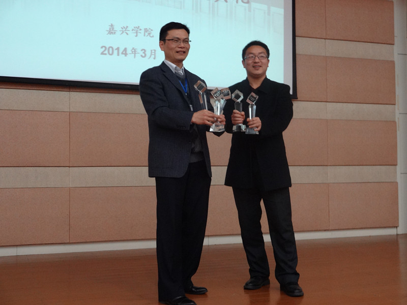 闭幕式在来宾们热烈的气氛中开始。主持人首先代表竞赛组组委会与秘书处向所有给予本次竞赛大力支持和帮助的领导、专家、老师和同学们表达衷心的感谢。之后,由王敏上台发言。王敏对本次大赛表达了充分的肯定,并总结出三个体会:各所高校对此次比赛的重视是大赛成功举办的重要原因;竞赛公平公正,沟通实时流畅保证了比赛的顺利进行;指导老师与参赛同学遵守比赛规则,体现其专业素养与技能水平。而方力争对选手们饱满热情的精神状态与严谨求实的参赛态度给予了肯定,并指出与国际相关竞赛接轨是此次比赛的一大特色,有利于学生拓展技能,提高实践水平,同时代表专家组表达了对精益求精的比赛追求。此次闭幕式的高潮由此开始,马文学宣布比赛成绩。本次大赛共设一等奖5名,二等奖12名,三等奖17名。嘉兴学院南湖学院两支队伍,嘉兴学院两支队伍与杭州师范大学一支队伍摘得桂冠。温州医科大学等12支队伍获得二等奖。台州学院等17支队伍获得三等奖。随后,举办了隆重的颁奖仪式,队伍代表们纷纷上台领奖,现场气氛热烈,每个人都面带着微笑,有的是一个个温馨的场面。