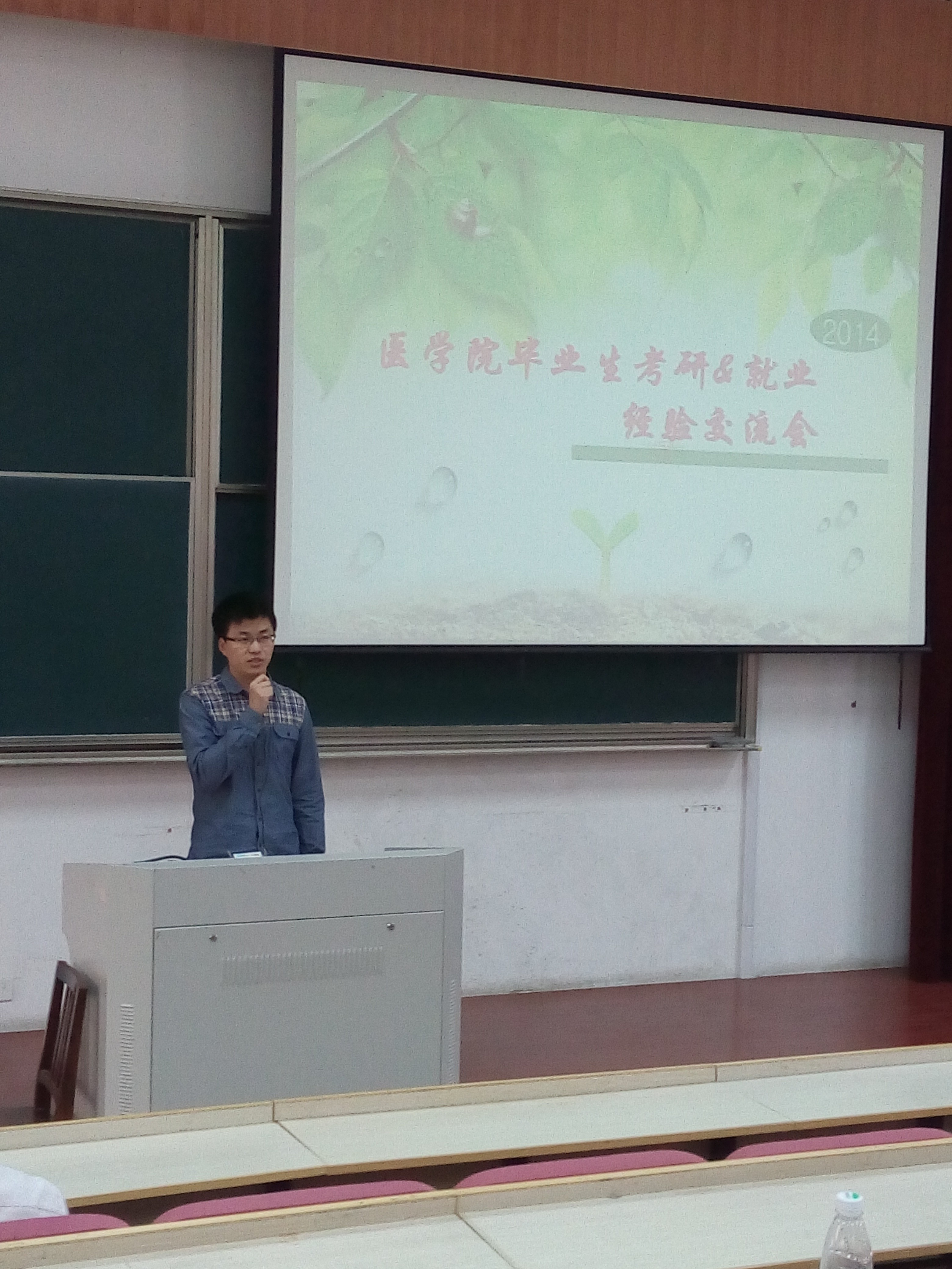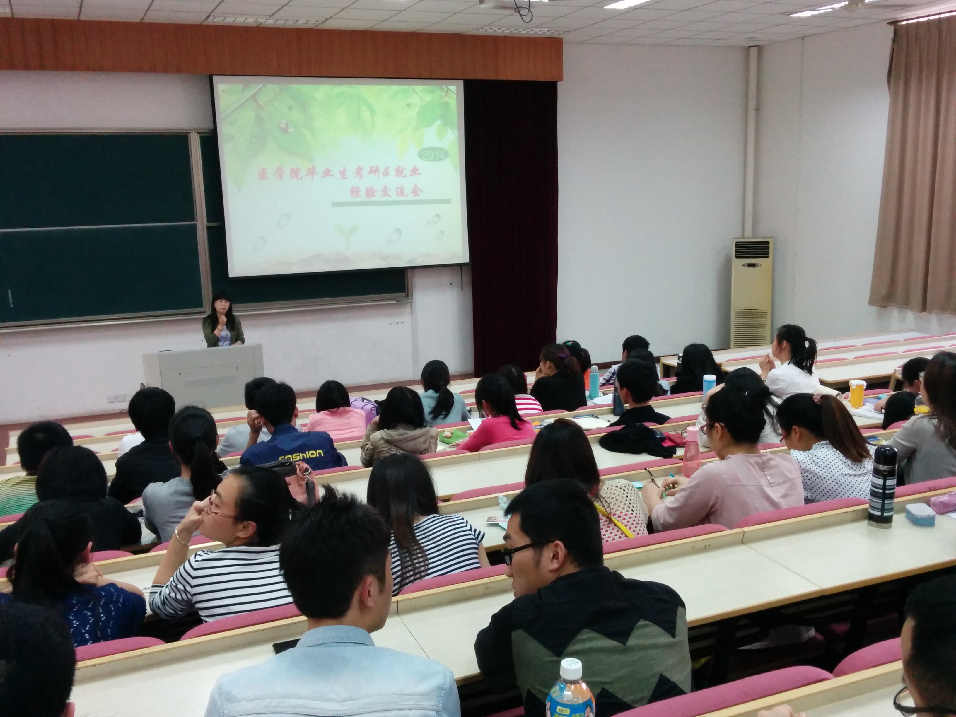 为了做好2015届毕业生的就业/考研工作,让同学们更好地了解当前毕业生的就业情况,提前做好考研、就业准备,在中文av 领导的重视下,我院于5月8日下午在13号楼报告厅举行了毕业生就业/考研经验交流会。会议由中文av 学工办主任彭溶主持,副书记黄金珠、辅导员江欢及全体10级临床医学专业同学参加了此次会议。 我院专门邀请了2014届在考研、就业过程中取得了优异成绩的临床医学专业6名毕业生,其中3名考研代表、3名就业代表,与学弟学妹们共同分享自己的宝贵经验。在交流会上,各位毕业生都坦言相待,将考研复习规划、技巧、院校选择、复试注意事项、就业形势、心理调试、笔试面试技巧等宝贵经验倾囊相授,他们的奋斗经历都深深感染着在座的每一位同学。会上同学们与毕业生积极互动,感到受益匪浅,交流会在热烈的掌声中结束。