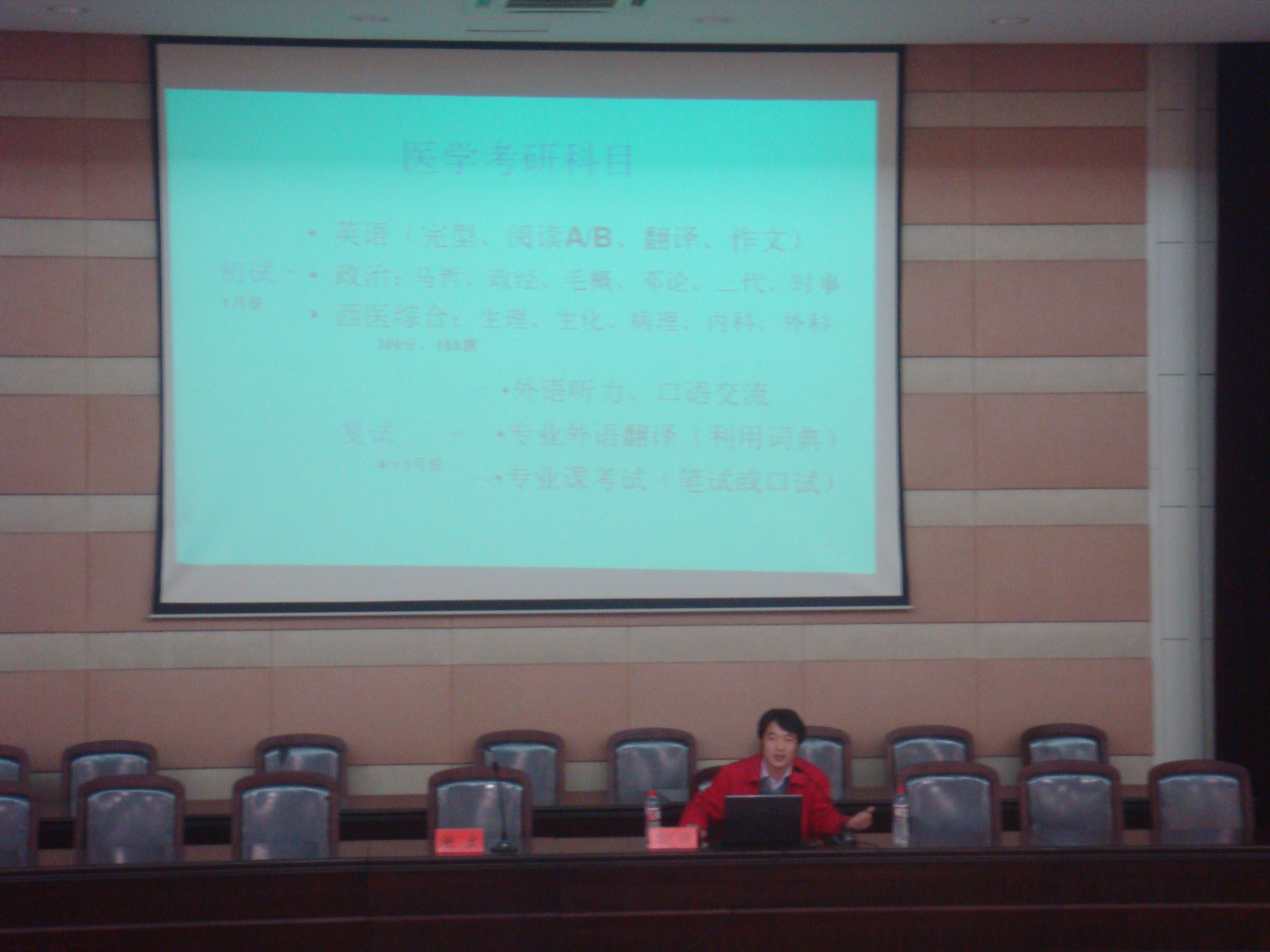 05级全体同学及06、07级同学近500人。报告中徐老师风趣幽默且切实详尽的演讲,给现场同学提供了丰富的考研信息。最后,徐老师用一句话来激励考研同学:此刻打盹,你将做梦;而此刻学习,你将圆梦! 会后,同学们纷纷表示作为医学专业的学生,面对当前的就业压力,为了提高自己的竞争力,考研也是一种很好的选择。