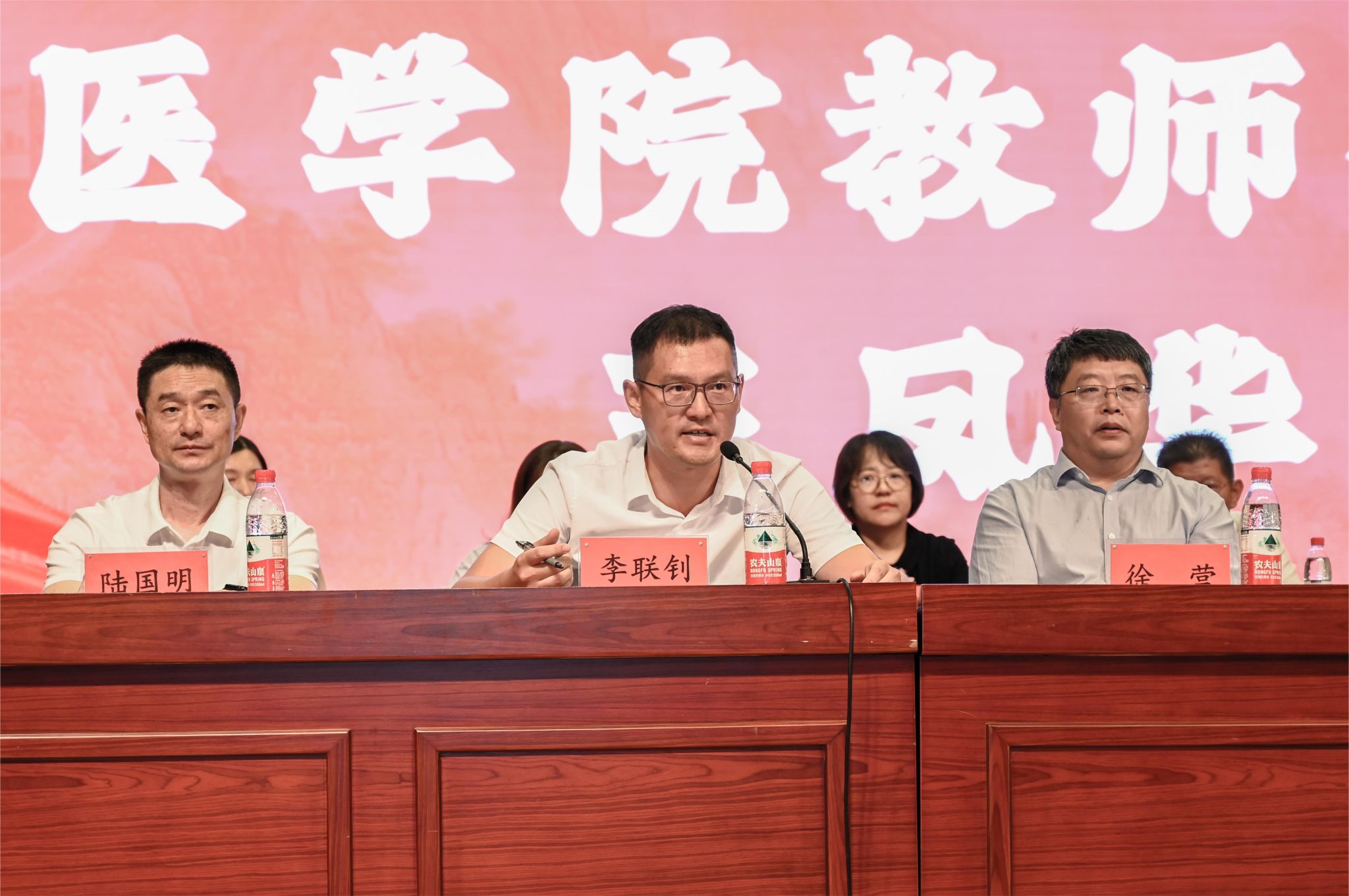 金风送爽,硕果盈枝朝阳喷薄,梦想启航。9月14日下午,中文av 2023级新生开学典礼在梁林剧场隆重举行。中文av 全体教职工、各附属医院教学管理负责人、中文av 各学生组织主要学生干部、2023级新生班助、2023级全体新生参加典礼,院党委副书记李联钊主持典礼。国歌雄壮,在庄严的国歌声中,开学典礼拉开帷幕。