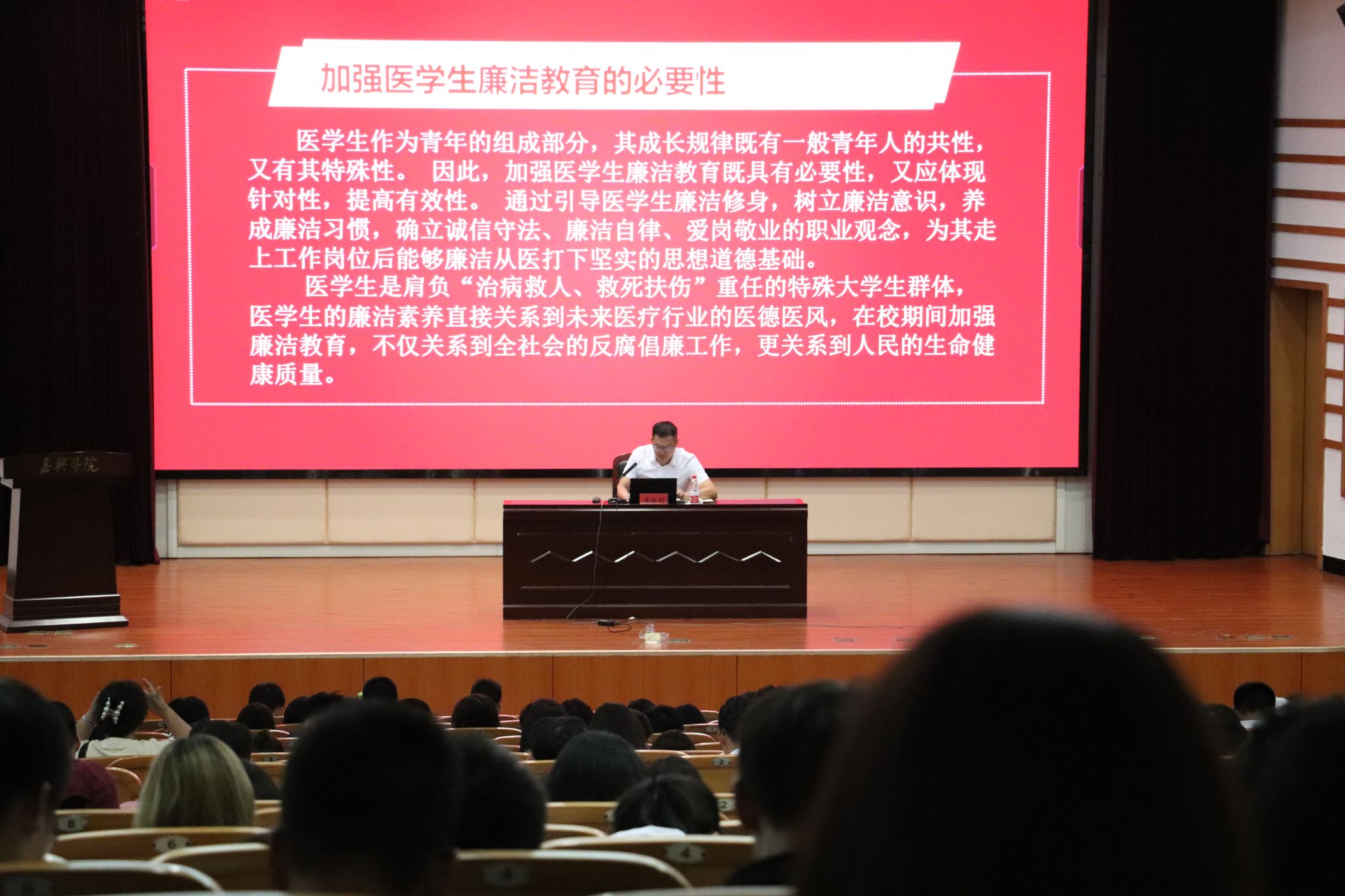 学院党委副书记李书记开展了以廉洁教育为主题的讲座。讲座以杏林典故,医学生誓言等方面讲了廉洁的重要性。强调了,在大学校园中,重要的不止是,更是,用清廉文化弘扬清廉精神。引导莘莘学子们积极向上,创造良好院风。