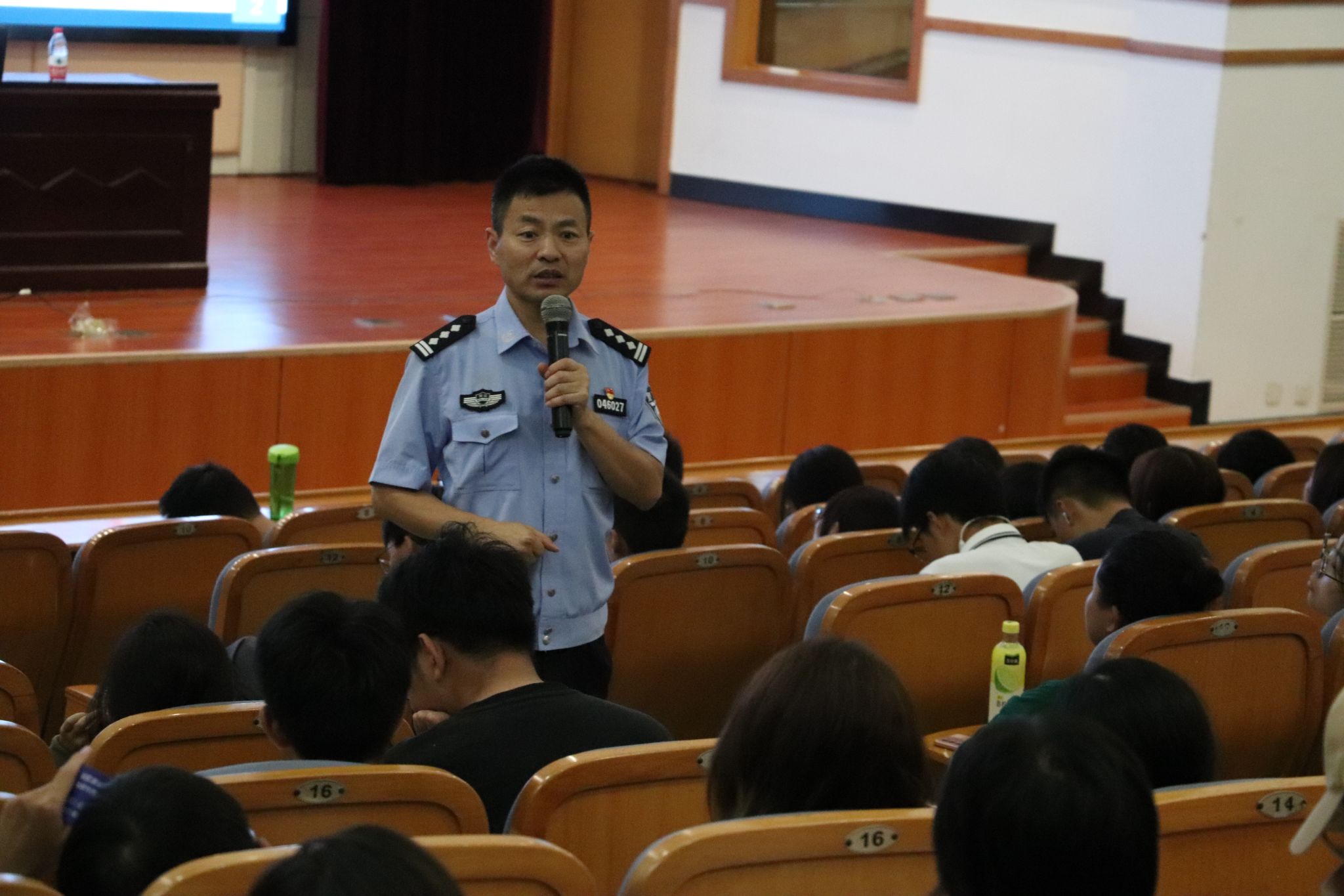 学校邀请城南派出所民警张秋江2023级新生带来了一节细致全面的安全讲座。他从安全问题、网络诈骗问题、消防安全问题、人身安全等方面入手,介绍了校园安全防护知识,为萌新们敲响警钟,要求他们牢记安全知识,成为自己的“第一手”保护人,为自己负责