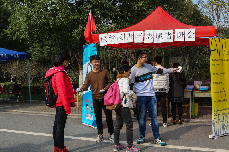 2016年12月1日,嘉兴学院中文av 青年志愿者协会在梁林校区老食堂门口和越秀校区笨笨熊广场举办了以“相拥艾人”为主题的防艾活动。