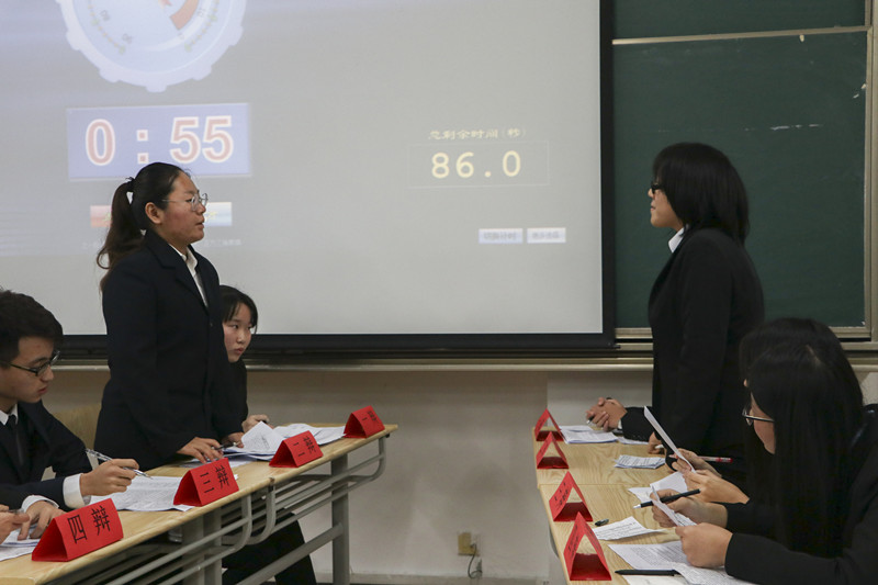 学生会主席高青婷,学生会副主席陈睿、陈晓曼,现辩论队队长李慧敏,2015级最佳辩手代表王首蓝。比赛由正方药学161班代表队和反方药学162班代表队通过“文才与口才谁更重要”这一辩题展开。