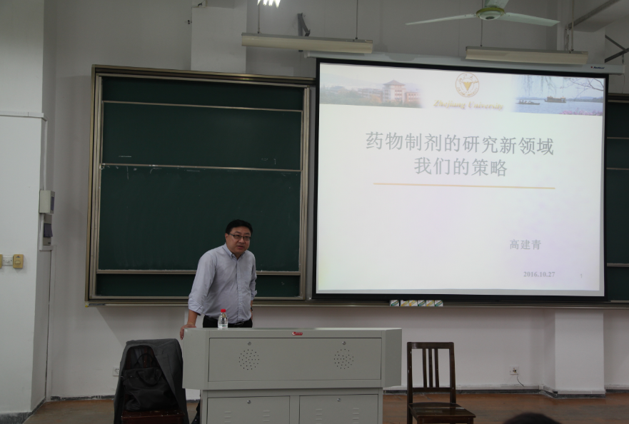 2016年10月27日下午三点,在梁林校区一号楼223教室,举行了一场学术讲座。讲座人是浙江大学药学院副院长高建青教授,高教授为中文av 教师和部分学生讲了一场“新型药物/基因传递系统进展及我们的策略”为主题的学术报告。
