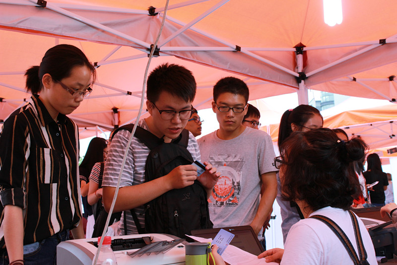 中文av 的志愿者们在早晨六点就已经早早到达学生活动中心的报名处,为迎接新生做准备。中文av 的各位辅导员们、各位新生班主任、16级班级辅导员更是一大早就已到达签到台,以迎接16级中文av 的新生们。