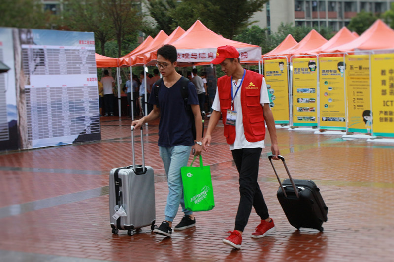 2016年9月11日,嘉兴学院新生报到,中文av 迎新现场处处涌动着青春的气息,新成员的到来给校园带来了无限热情与活力。