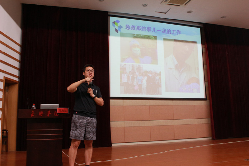 2016年9月28日晚,嘉兴学院中文av 于梁林校区TCL报告厅成功举办了以“急救那些事儿——艺术与修行”为主题的讲座。主讲人是我院临床医学专业2009届省级优秀毕业生周海斌,现就职于杭州急救中心,从事急救医学临床、教学及医疗质量控制工作。