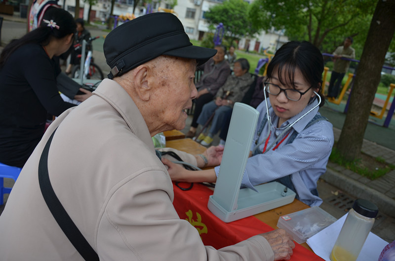 2016年5月14日,嘉兴学院中文av 青年志愿者协会的成员们来到西马桥小区进行“全民皆医——预防中风”的宣传活动。