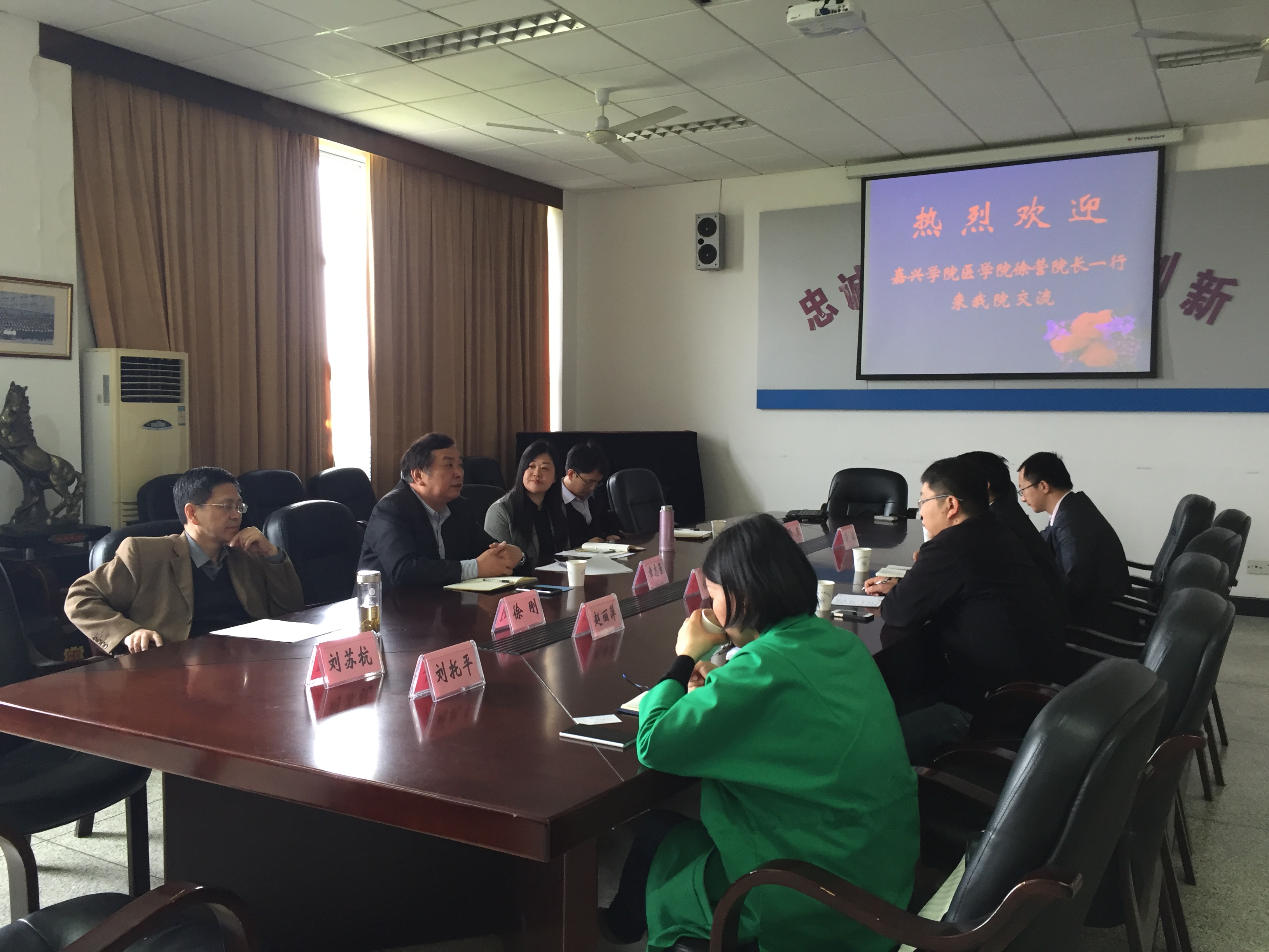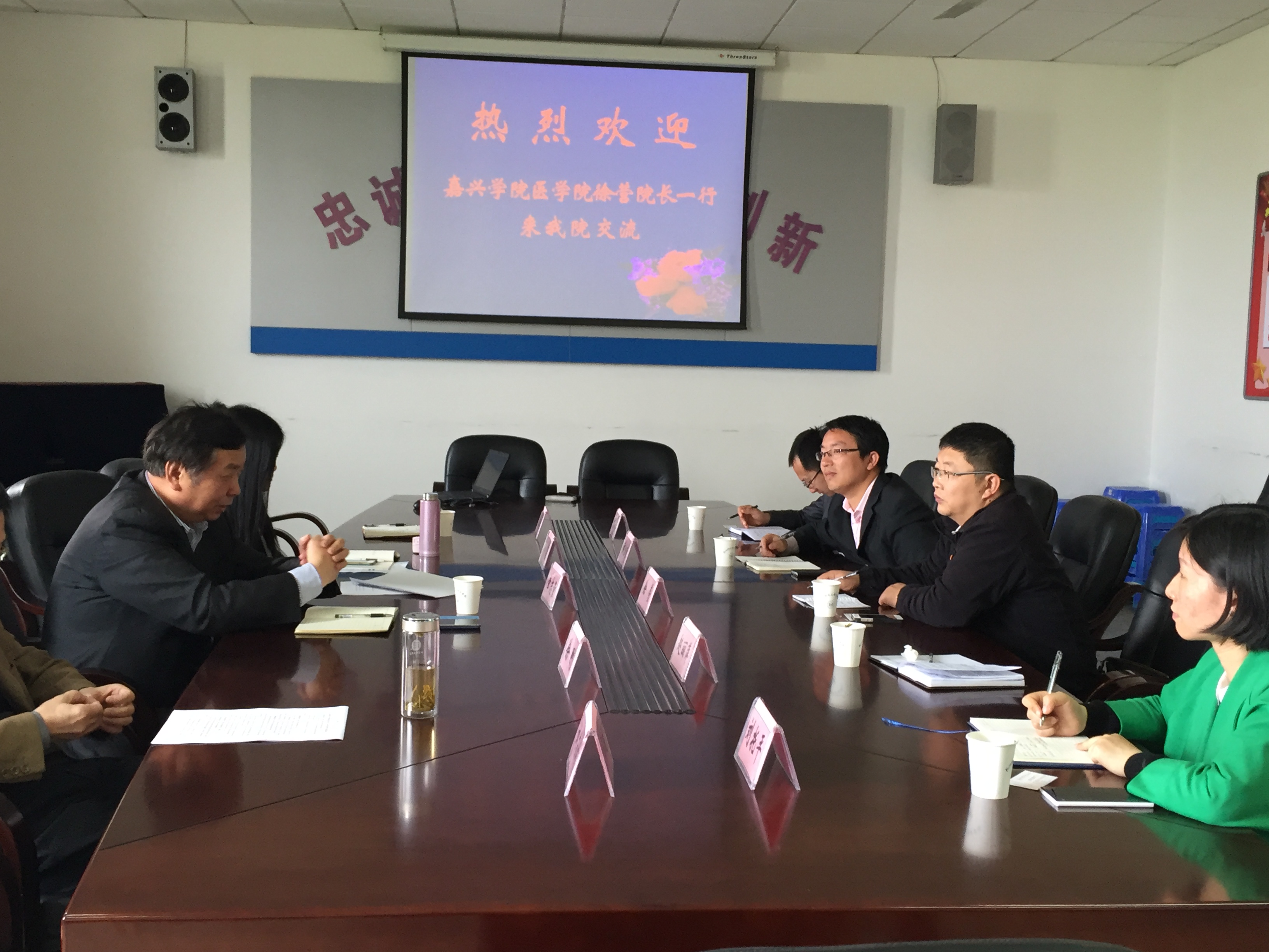 2016年4月18日,副院长徐营、副书记黄金珠及中文av 教务、学工和团委人员一行5人前往杭州师范大学医院院进行了学习调研。杭州师范大学中文av 党委书记章志量、副书记冯涯、主任徐刚等领导热情接待了徐营副院长一行,并与我院领导举行了深入的交流。