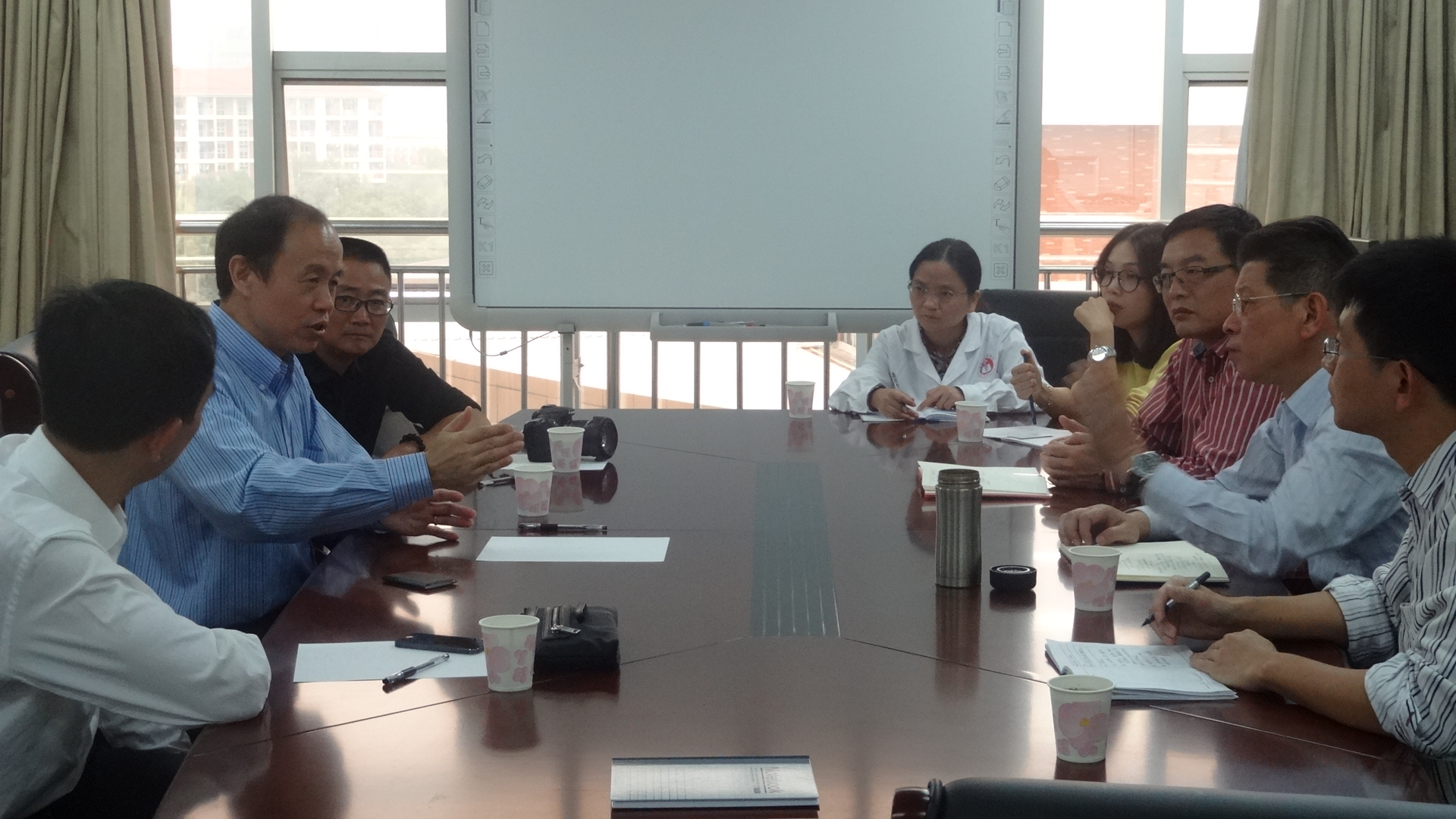 2014年10月16日15时,杰出海外校友杨剑飞与教师座谈会在中文av 实验中心如期举行。参加座谈会的主要有:首席科学家、免疫学家杨剑飞博士、浙江三狮医院王国平院长、嘉兴市疾病预防控制中心朱武通老师、嘉兴学院中文av 党委书记惠太望老师,嘉兴学院徐水凌教授等多位老师。