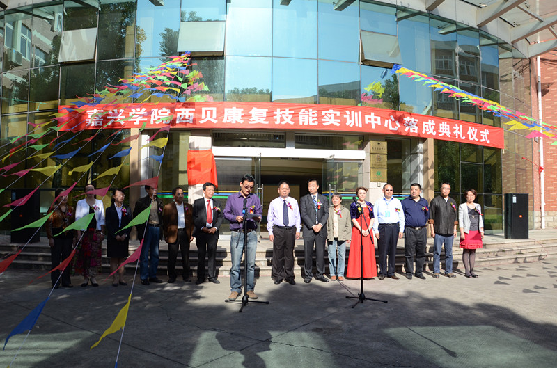 2014年10月18日下午,嘉兴学院中文av 西贝康复技能实训中心落成典礼在梁林校区医学实验中心大楼前举行。西贝电子科技发展有限公司总经理王维杰先生等相关人员,嘉兴学院党委副书记史永安教授,中文av 院长孟继鸿教授,中文av 党委书记惠太望先生,副院长黄嬛教授等出席了本次活动。