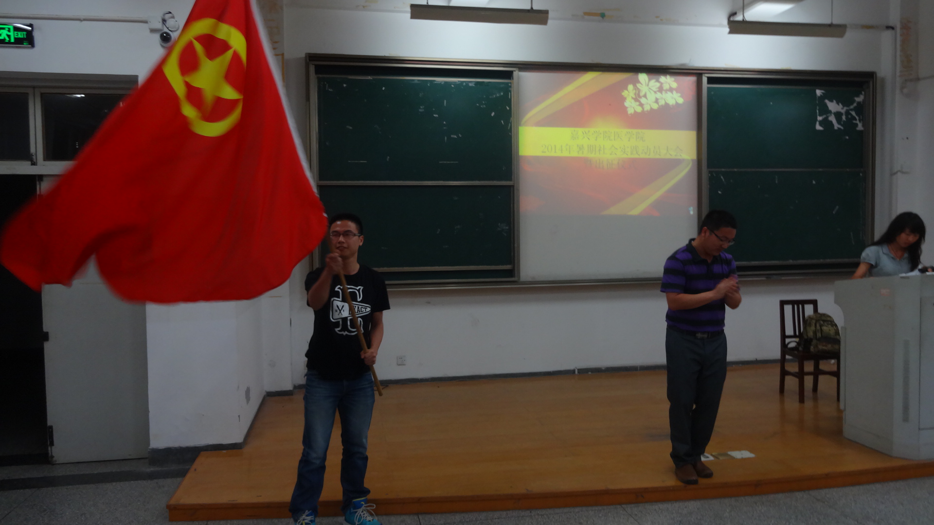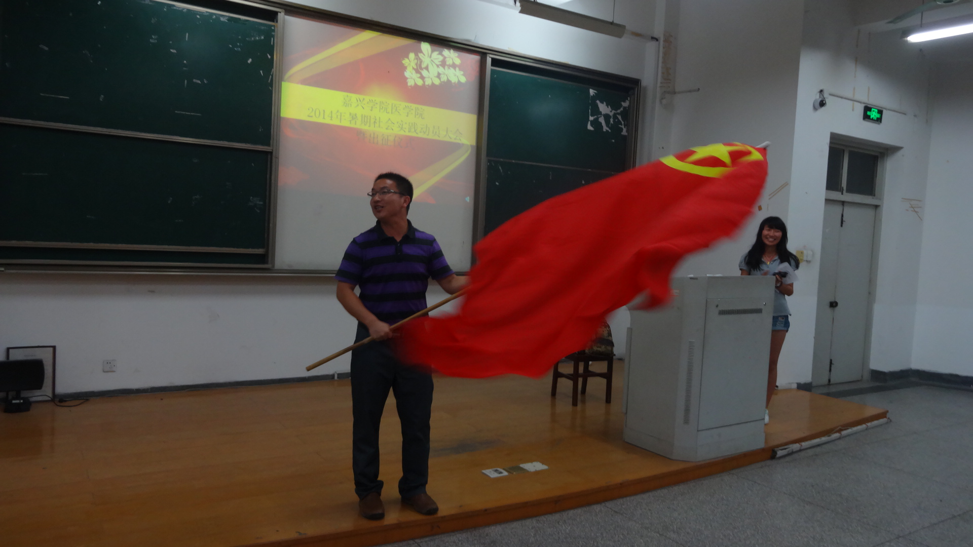 7月3日晚19:00,嘉兴学院中文av 2014年暑期社会实践动员大会暨出征仪式在梁林校区1号楼221教室开幕。中文av 党委副书记黄金珠老师,团委书记赵丽萍老师出席,暑期社会实践团队全体队员参加本次大会。