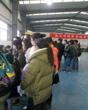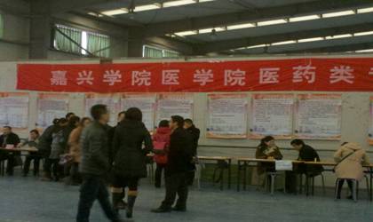 1月11日,中文av 在梁林校区风雨操场举办了“医药类专场招聘会”。此次招聘会得到了中文av 领导的高度重视,学院积极联系海宁市卫生局、平湖市卫生局、嘉信医药、华润赛科药业等31家用人单位参加,提供工作岗位344个。中文av 有近100名学生参加了招聘会。招聘会上,同学们主动向用人单位提交个人简历和报名表,招聘方热情地为同学们讲解公司基本情况及相关岗位要求,招聘现场气氛热烈。学院将进一步加强学院毕业生就业市场建设,为学生提供更好的就业舞台。