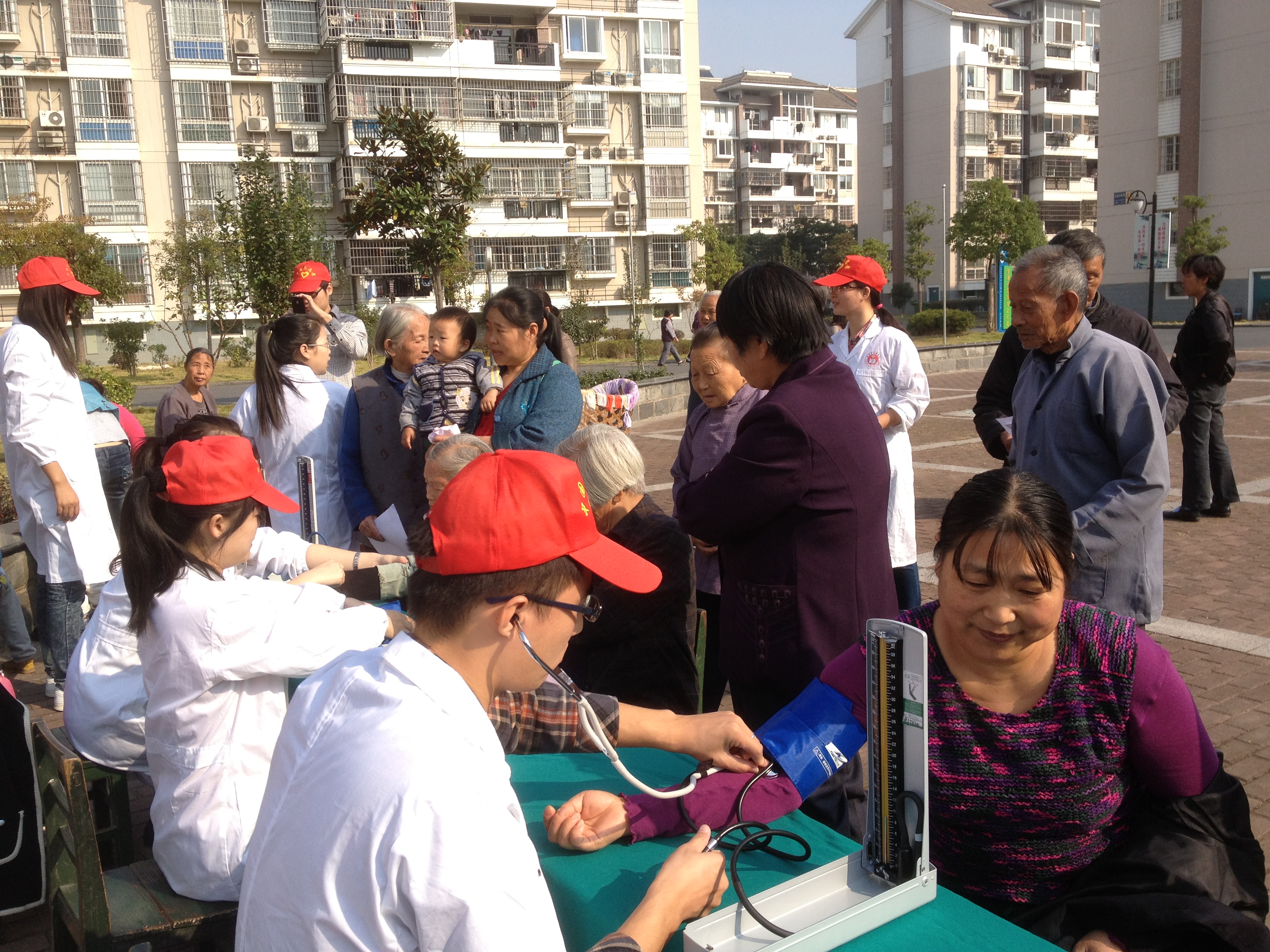 此次活动旨在送温暖进社区,关心老人的健康。活动内容主要包括为老人测量血压、称量体重、秋冬季常见疾病健康知识宣传及指导等。穿着白大褂的白衣战士们一出现,便引起了周围群众的关注,更有许多老爷爷、老奶奶听到消息后特地从家里出来,一大群小朋友也跟随着来参与到活动中。活动开展有序,老人们在测量血压后又向党员同学们询问了一些健康方面的问题,了解了秋冬季常见疾病预防知识。志愿者们热情地服务,悉心地讲解,力所能及解答老年人们提出的问题。