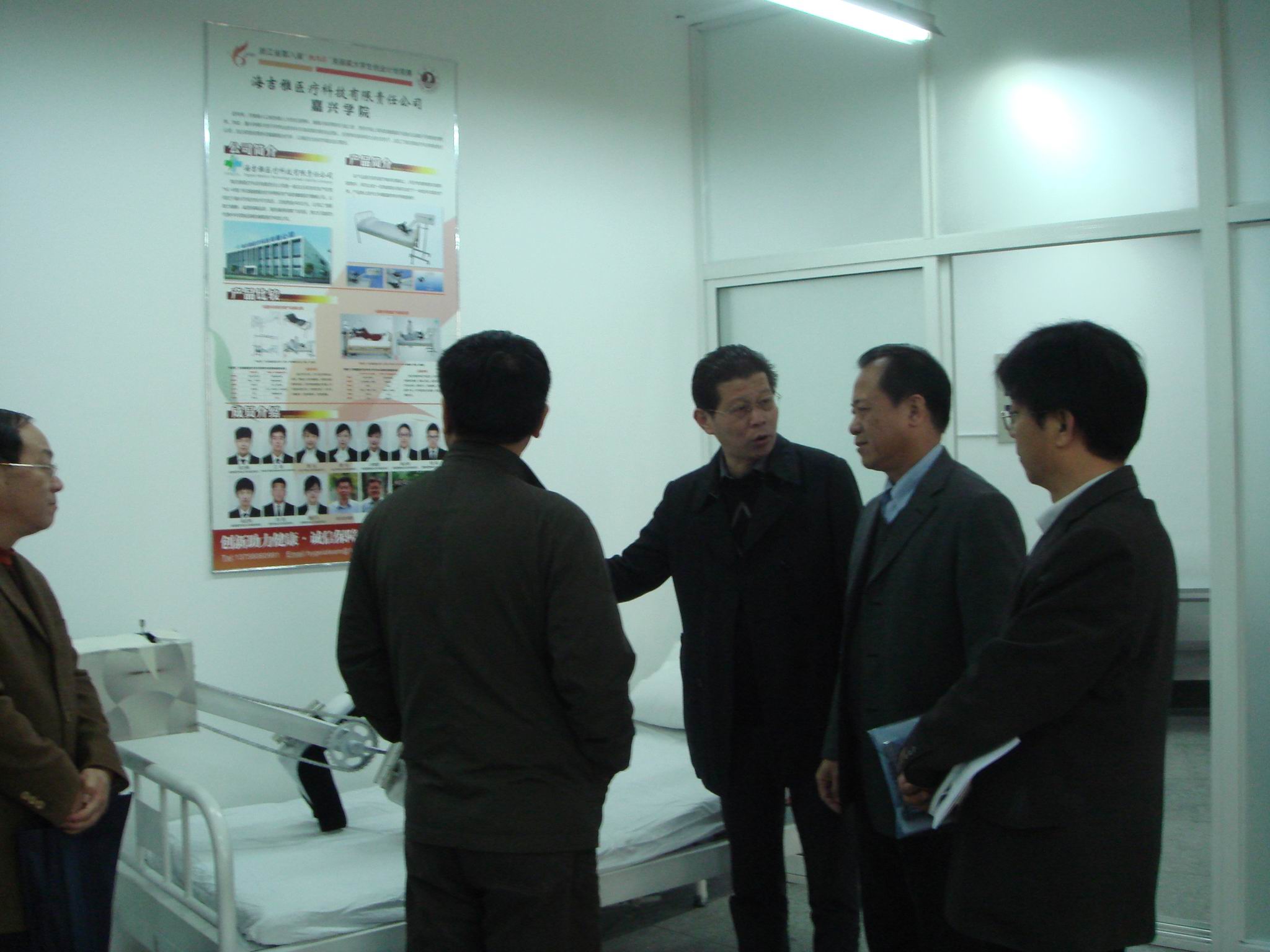 11月22日上午,校党政领导胡建成、徐宪民、吕延勤、杜欢政、严从荃、史永安、费建文、周亚新等,在中文av 召开党委会,专题听取了临床医学认证工作的汇报,详细了解了认证工作的准备和进度情况,胡建成书记和徐宪民校长对做好临床医学认证工作作重要指示。之后校党政领导参观了中文av 陈列室,实地检查了PBL教室、医学实验中心,考察了实验室仪器设备。