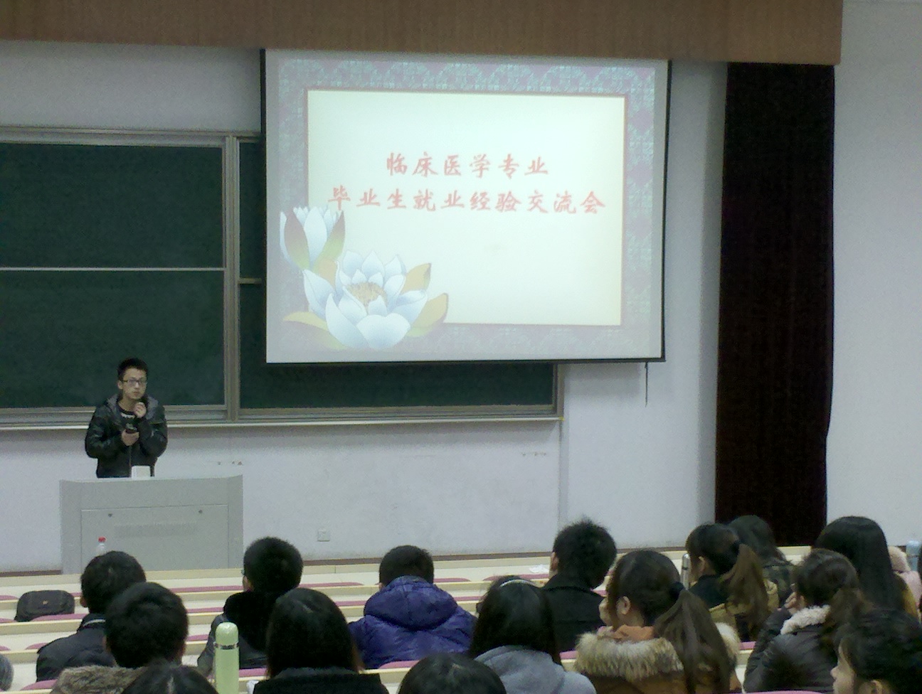 为了让08级临床医学专业同学更好地了解当前毕业生的就业情况,提前做好考研、就业准备,在中文av 领导的重视下,学工办于3月22日晚在13号楼报告厅举行了08级临床医学专业毕业生就业经验交流会。会议由中文av 学工办主任蒋小红主持,副书记谢宏、就业辅导员彭溶及全体08级临床医学专业同学参加了此次会议。 我院特意邀请07级临床医学专业陈幸、陈马云、周阳、张超男4位在考研、就业过程中取得优异成绩的毕业生代表与08级的学弟学妹们共同分享自己的宝贵经验。在交流会上,各位毕业生都坦言相待,将考研复习规划、技巧、复试注意事项、就业心理调试、备考技巧等宝贵经验倾囊相授,他们的奋斗经历都深深感染着在座的每一位同学。 最后,持续了两个多小时的大会在热烈的掌声中结束,大家仍然觉得意犹未尽,在会后还分别找到校友进行个别交谈,并表示此次交流会受益匪浅。