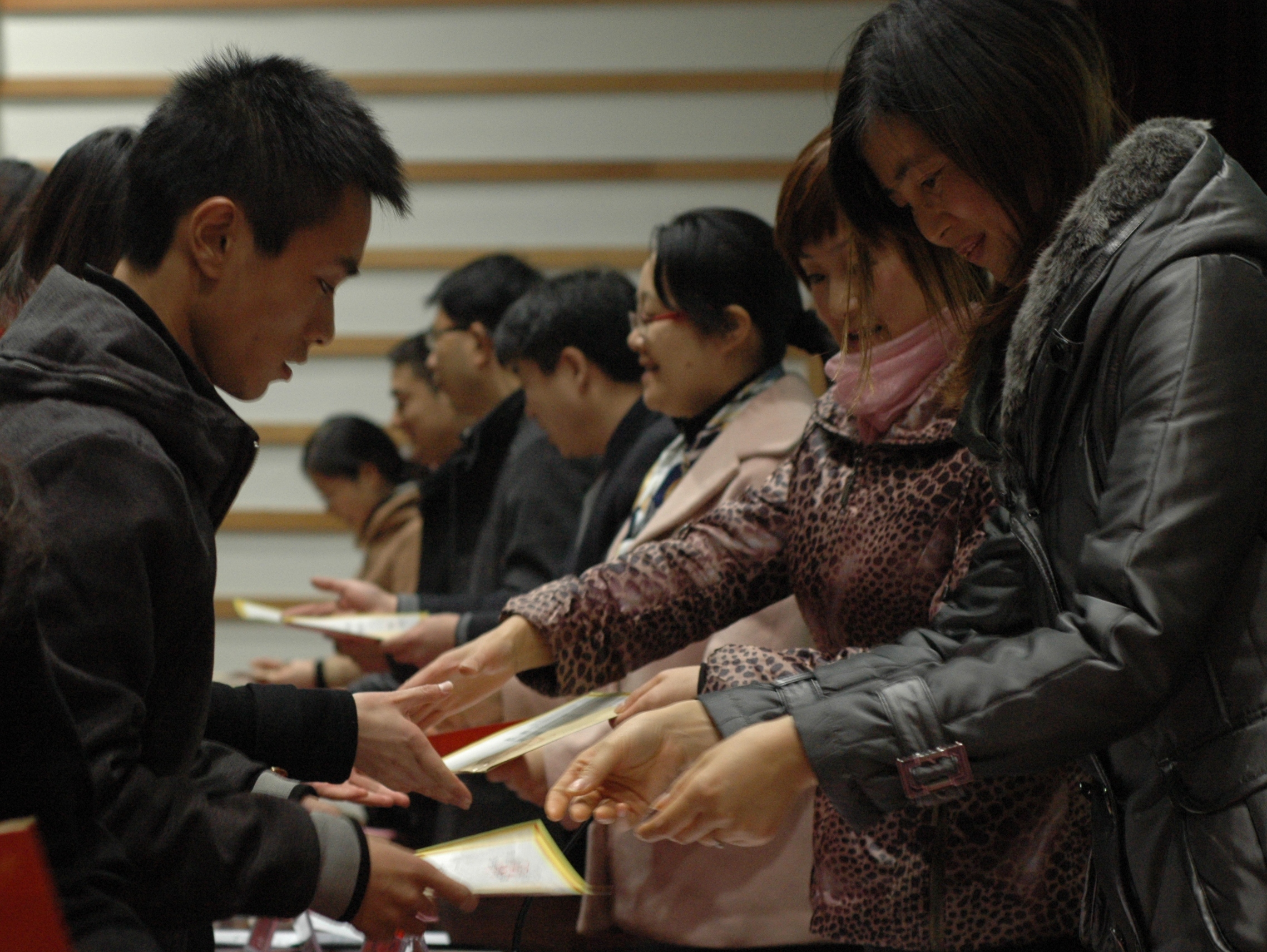 校风、学风建设作出贡献的各位老师和全体同学表示衷心的感谢。张书记向受表彰的优秀学生代表表达三层意思:一是表示祝贺,向大家学习;二是理性对待,头脑要清醒;三是要有感恩之心。向大一的同学们也表达了三层意思:一是见贤思齐;二是思考和反省,明白些道理;三是力争当一回先进。张书记对大学英语四、六级考试和期末考试进行动员并强调了考风考纪,希望各位同学思想重视、态度端正;周密计划、早作准备;讲究策略、注意实效;树立信心、积极迎考。