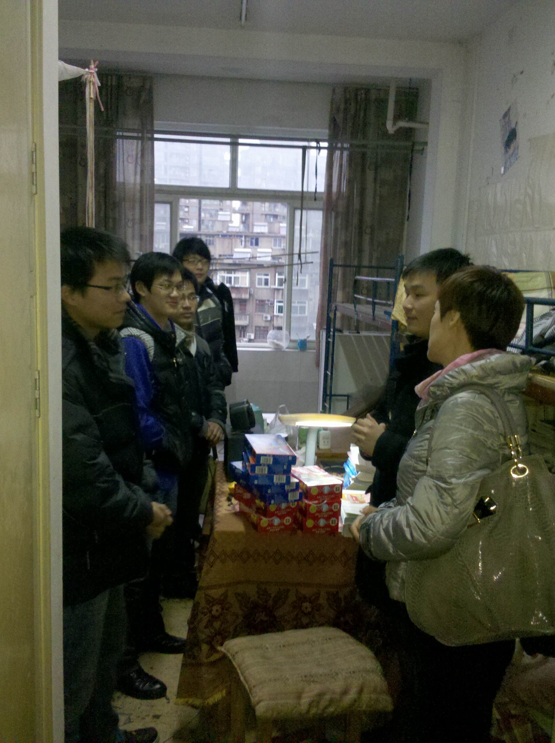 中文av 2012届毕业生中共有149人报考了2012年的研究生入学考试,占毕业生总人数的36.6%,是历年来报考人数之最,目前考研备战已进入白热化阶段,为了在最后阶段给大家鼓劲,12月27日下午4点半,中文av 张杰书记、谢宏副书记、学工办蒋小红主任、彭溶老师带着精心准备的慰问品来到老卫校宿舍看望考研学生。 张杰书记首先代表学院向考研学生表示亲切的慰问,叮嘱他们要保证营养、注意身体、积极备考,并预祝他们在2012年研究生入学考试中取得好成绩。谢宏副书记也希望同学们在冲刺最后阶段,把身心调整到最佳状态,取得考研的最终胜利。 同学们纷纷表示一定不辜负领导和老师的殷切希望,争取在2012年研究生入学考试中取得优异成绩!