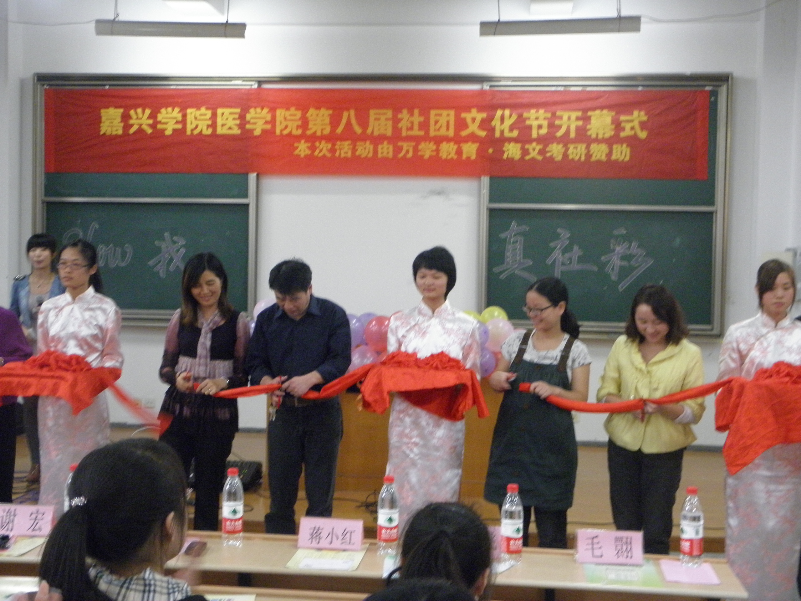 2011年10月19日中午12:30,中文av 第八届社团文化月“Show我真社彩”开幕式在梁林校区1号楼121教室举行。中文av 党总支书记、副院长张杰、党总支副书记谢宏、学工办团总支辅导员出席本次活动,并为开幕式剪彩。 开幕仪式上,谢宏副书记发表了热情洋溢的讲话,从校园文化的群众性、导向性和实效性三个方面对中文av 社团文化建设提出了殷切的期望,鼓励同学们通过参加校园文化活动提高自身的人文素养,以点带面共同促进校园良好文化氛围的形成。 本次社团文化月由中文av 社工委旗下的15个社团共同承办,共开设16项活动,涉及书画、瑜伽、演讲、音乐、舞蹈、英语等多个方面,以展现各个社团的不同特色和精彩风貌,社团文化月计划于十一月中旬结束。