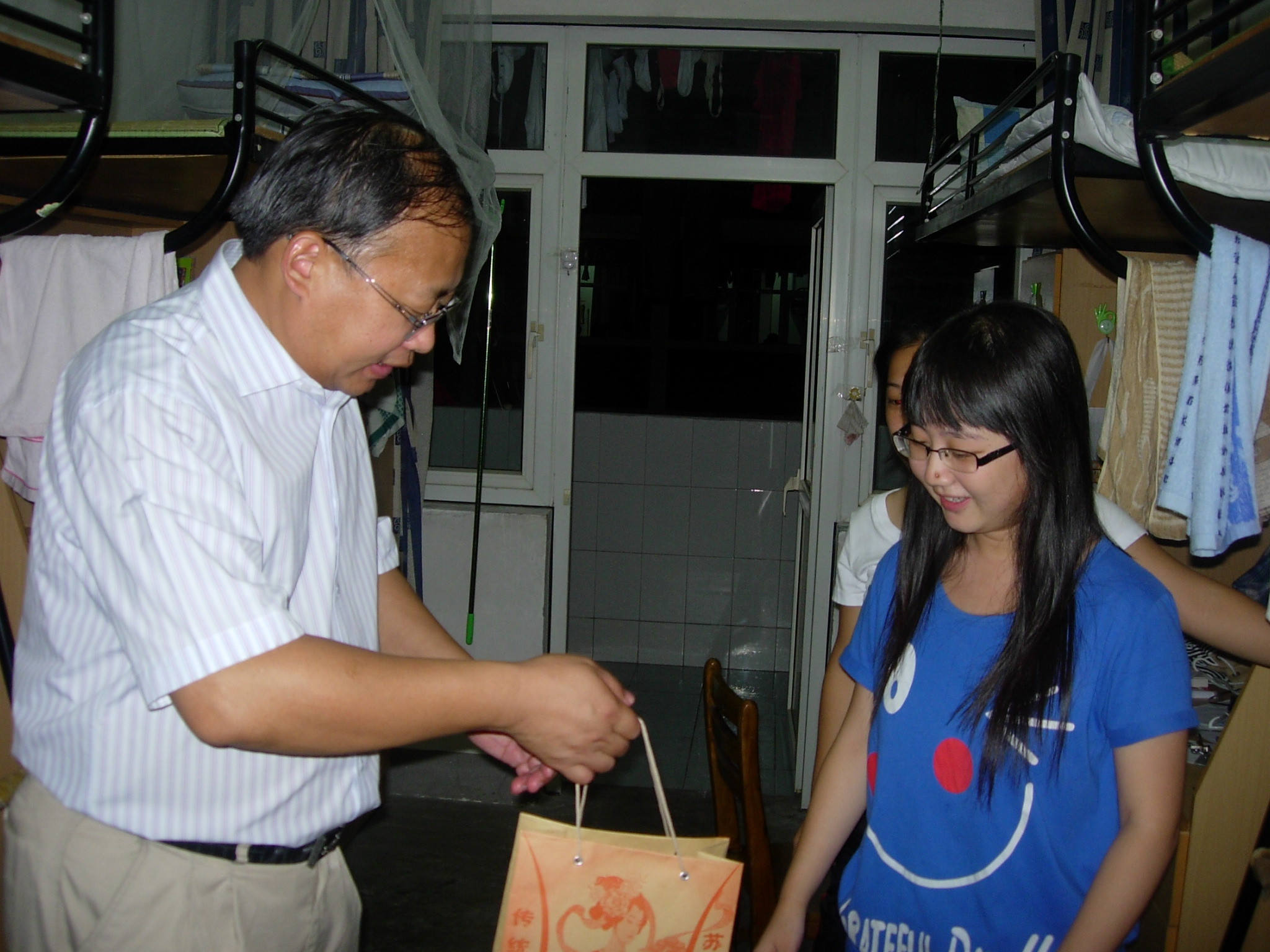 9月12日中秋节晚,校党委副书记吕延勤率领学生处处长惠太望、副处长姚颖超等走访探望中文av 2011级新生,并向新生赠送月饼表达节日的慰问。中文av 党总支副书记谢宏、学工办主任蒋小红陪同走访了新生寝室。走访过程中,吕书记等校领导亲切地询问了新生在校的学习生活情况,并鼓励他们尽快学会自我管理,适应大学生活。此次校领导的中秋走访,让中文av 2011级全体新生受到了极大的鼓舞,感受到了来自学校的关心和爱护,也增强了他们对嘉兴学院的归属感和认同感。