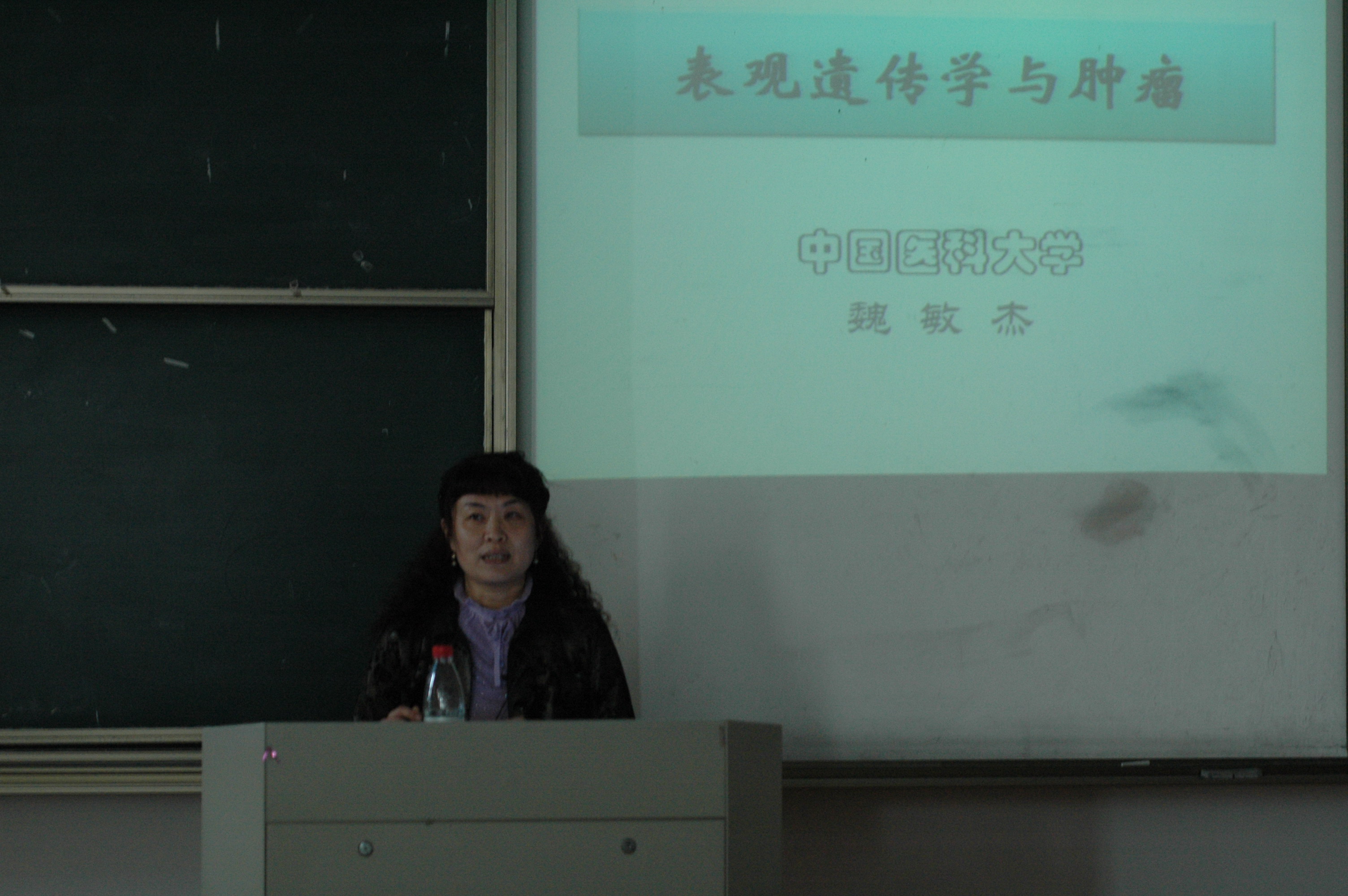 3月28日下午,中国医科大学药学院院长魏敏杰教授来院作题为《表观遗传学与肿瘤》的学术讲座。讲座由中文av 副院长惠斌主持。 讲座中,魏敏杰教授介绍了表观遗传学与肿瘤相关方面的前沿信息,以及她的团队在这一领域所做的工作。100余名师生聚精会神地听讲座。讲座结束后,学院做肿瘤方向研究的老师与魏教授进行了交流。 通过讲座,我院师生更加深入了解了表观遗传学与肿瘤的最新理念,开阔了视野,对我院肿瘤方向的科学研究具有积极的指导意义。