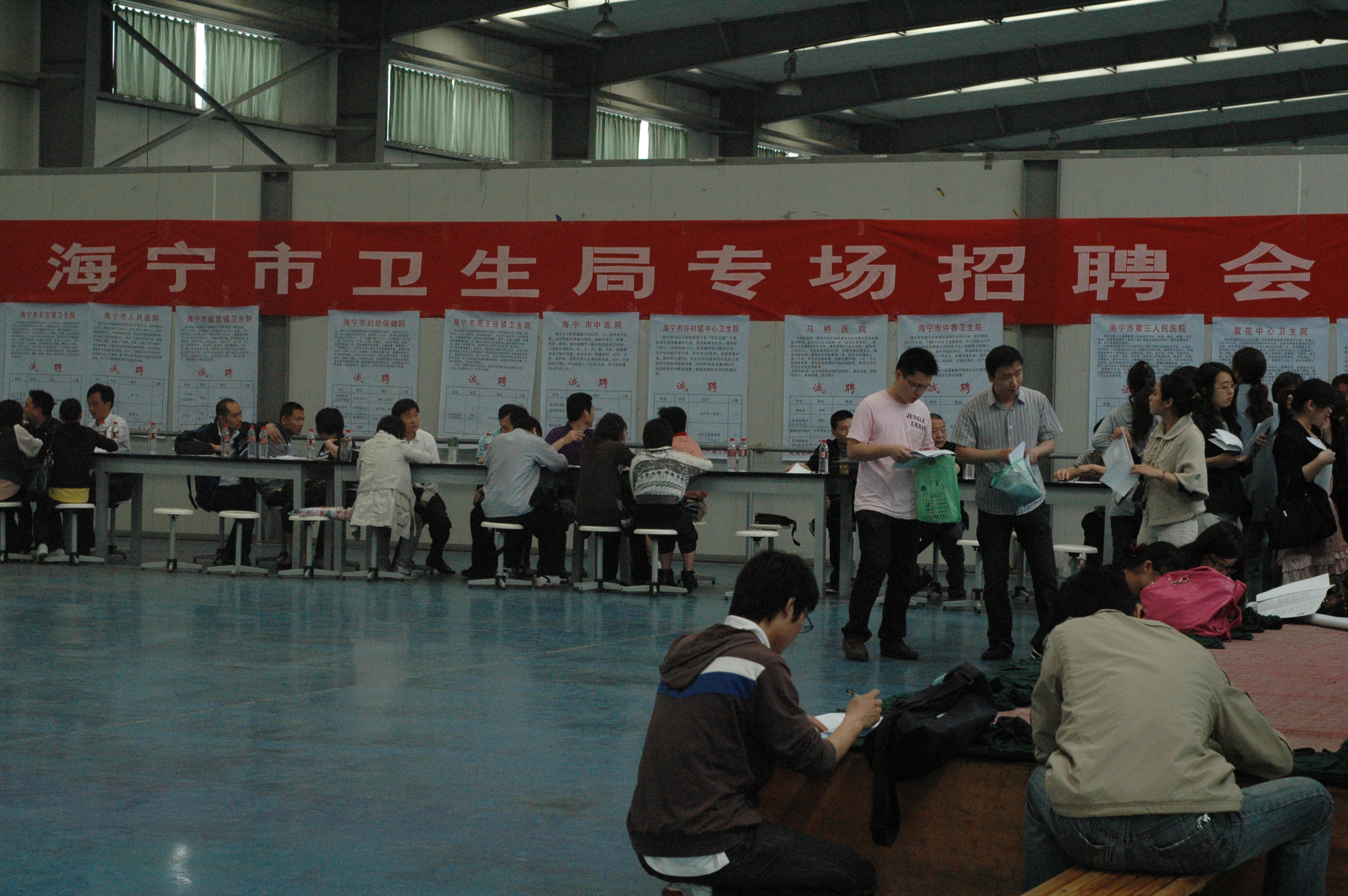 5月19日,中文av 在梁林校区风雨操场成功举办了“2010年海宁市卫生局专场招聘会”。此次招聘会得到了学校领导的高度重视和大力支持,中文av 领导积极联系海宁市人事局和卫生局,海宁三院、海宁四院、海宁市妇保院、海宁市中医院、马桥街道医院、长安镇卫生院、许村中心卫生院、斜桥中心卫生院等17家用人单位参展,提供卫生单位事业编制工作岗位(本科和专科)45个。参加本次招聘会人数有148人。 招聘会上,招聘方热情地为同学们介绍本单位情况,讲解就业方面遇到的问题以及困惑,同学们也主动向用人单位提交个人简历和报名表,招聘现场气氛热烈。当天,海宁市卫生局组织报考同学在梁林校区统一笔试,我院共有57名同学通过笔试。5月20日,通过笔试同学参加由卫生人事部门统一组织的面试。最终我院有18名同学通过笔试和面试。 本次招聘会在海宁人事局、卫生局的大力支持下,在学校、学院领导及学工办老师的精心筹备下取得圆满成功,学院将广泛联系并吸引用人单位进校招聘,进一步加强学院就业市场建设,为毕业生提供更好的就业平台。