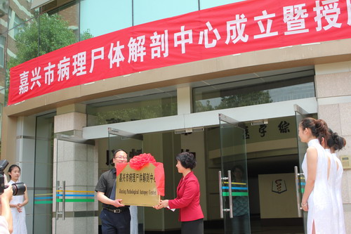 在医学实验中心举行嘉兴市病理尸体解剖中心成立暨授牌仪式。嘉兴学院冯浩副校长,嘉兴市卫生局沈勤副局长、医政处朱惠处长,嘉兴学院实验设备处尤小军处长、李成副处长,中文av