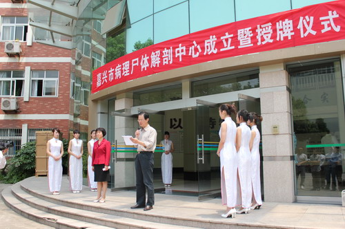 以此为契机加强学科建设,培育特色专业,进一步加强与市医疗卫生界的“产学研”合作。沈勤副局长代表嘉兴市卫生局对嘉兴市病理尸体解剖中心的成立表示热烈的祝贺,并对病理尸体解剖工作提出了要求:一是要加强尸检工作的领导;二是要完善尸检工作的规程;三是要强化部门间的配合支持。