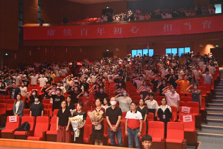 开学典礼在庄严的国歌声中拉开序幕。副院长徐营宣读2021级新生班主任聘任文件,发放聘书;副院长潘巍巍隆重介绍了学院的六位教师代表,学生登台献花。“我心目中的好老师”获得者王可、“浙江省千名好支书”获得者黄越燕和新生代表分别发言。