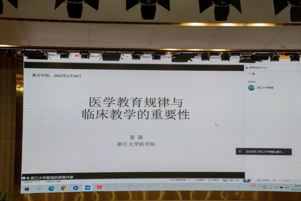 教学研究中心副主任夏强教授通过线上视频向全体参会人员作了《医学教育规律与临床教学的重要性》的讲座。