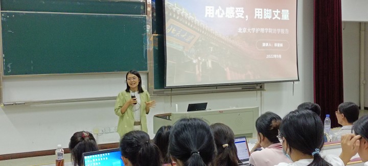 护理学系师生带来“用心感受,用脚丈量——北京大学护理学院访学见闻分享”报告会。护理学系全体教师及护理学专业2020级、2021级学生到场聆听,2022级学生在线同步参加了分享会。