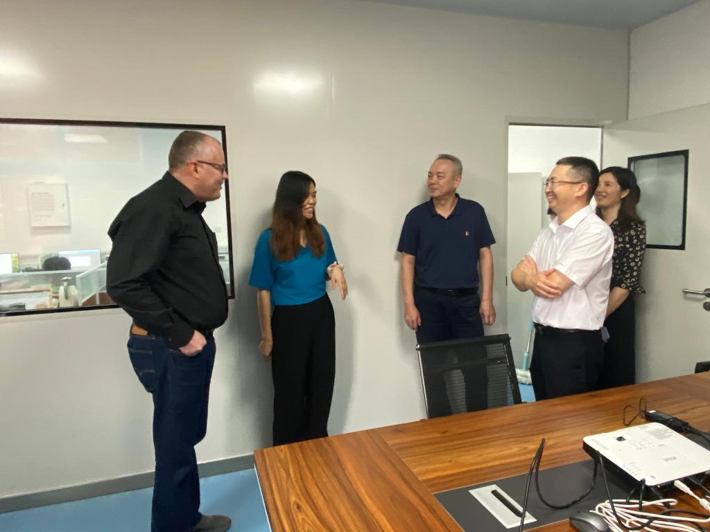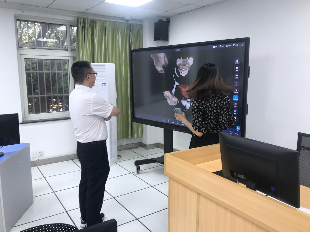 陈新友一行在学院党委书记陈云飞、副书记李联钊、医学实验中心主任蒋小红的陪同下走访调研了人体生命科学馆、医学虚拟仿真实验教学示范中心、临床技能中心、中文av 科研平台等实验室建设与运行情况,并亲切慰问了阿里克谢院士。走访过程中,交流了实验教学、大型仪器服务、实验室建设等情况。