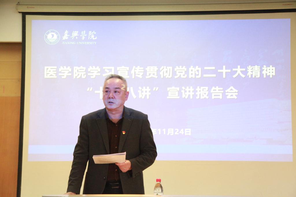 陈云飞表示,党的二十大报告高屋建瓴、视野宏阔,博大精深、内涵丰富,具有强大的历史穿透力、思想引领力、政治动员力、时代感召力。全院师生要以此次宣讲为契机,持续深入学习宣传贯彻党的二十大精神,持续兴起学习宣传贯彻党的二十大精神的热潮。他强调,全院教职工要牢记为党育人,为国育才的使命,努力把嘉兴学院中文av