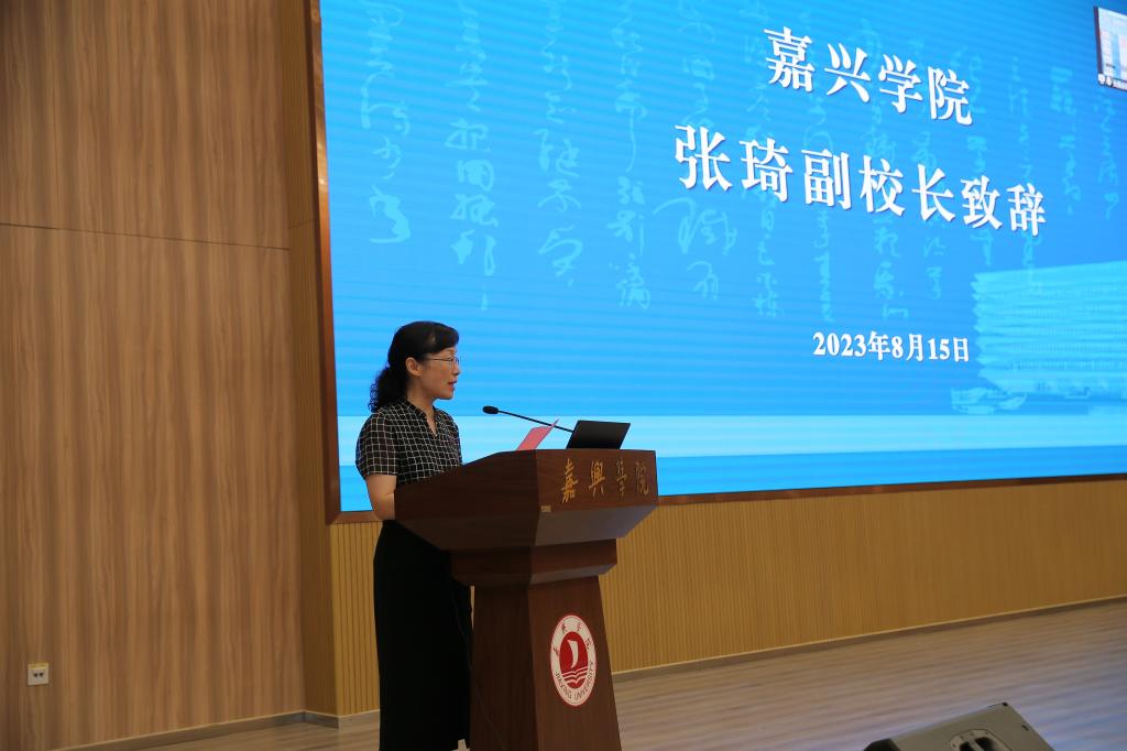 张琦副校长致辞,她表示,多年来,嘉兴学院认真落实总书记贺信精神,牢记为党育人、为国育才使命,充分发挥在红船起航地办学的政治优势、长三角一体化发展的战略优势,大力弘扬伟大建党精神、红船精神,坚定不移走内涵发展与应用型办学之路。在省市两级党委政府与社会各界大力支持下,学校正全力以赴建设“有特色、善创新”的一流应用型综合性大学。