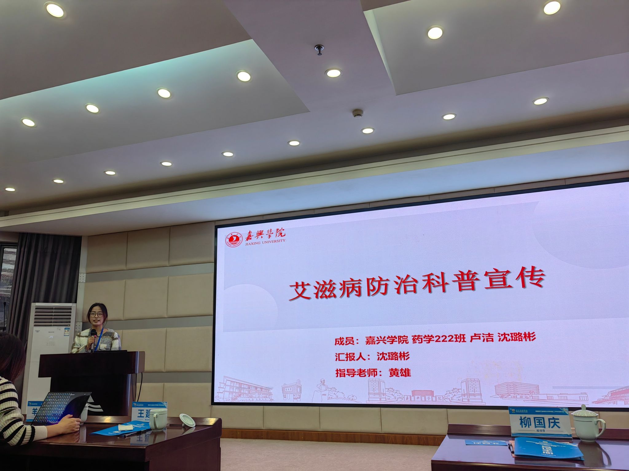 我院药学系黄雄老师,药学222班学生沈璐彬、卢洁同学参加了会议,沈璐彬同学在大会作了“艾滋病防治科普宣传”的PPT汇报交流。中文av 药学系作为嘉兴市巾帼文明岗和浙江省高校党建样板支部,通过参加此次活动,忠实履行着“传播药学知识,服务大众健康”的责任。
