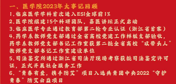 的2023年荣誉时刻,表彰颁发“杏林好老师”、“突出贡献奖”、“院级荣誉个人”、“十佳学生干部”、“十佳志愿者”等荣誉。