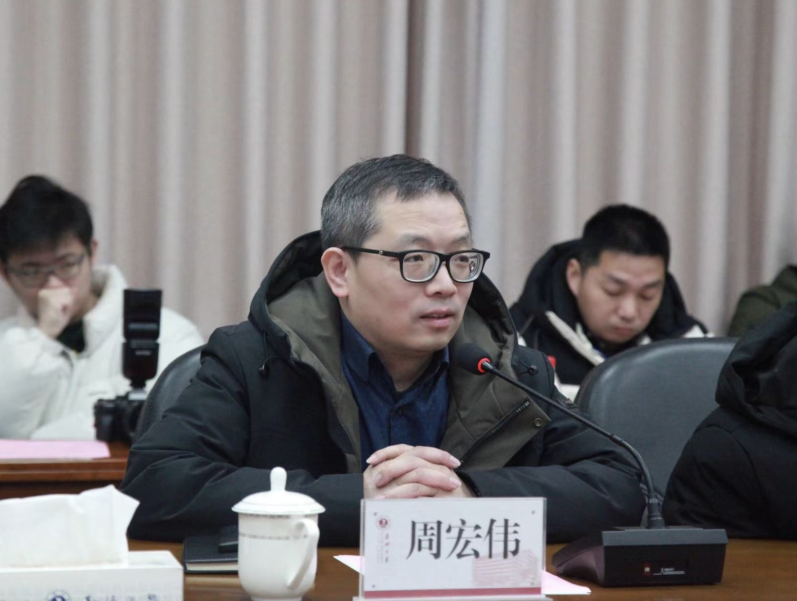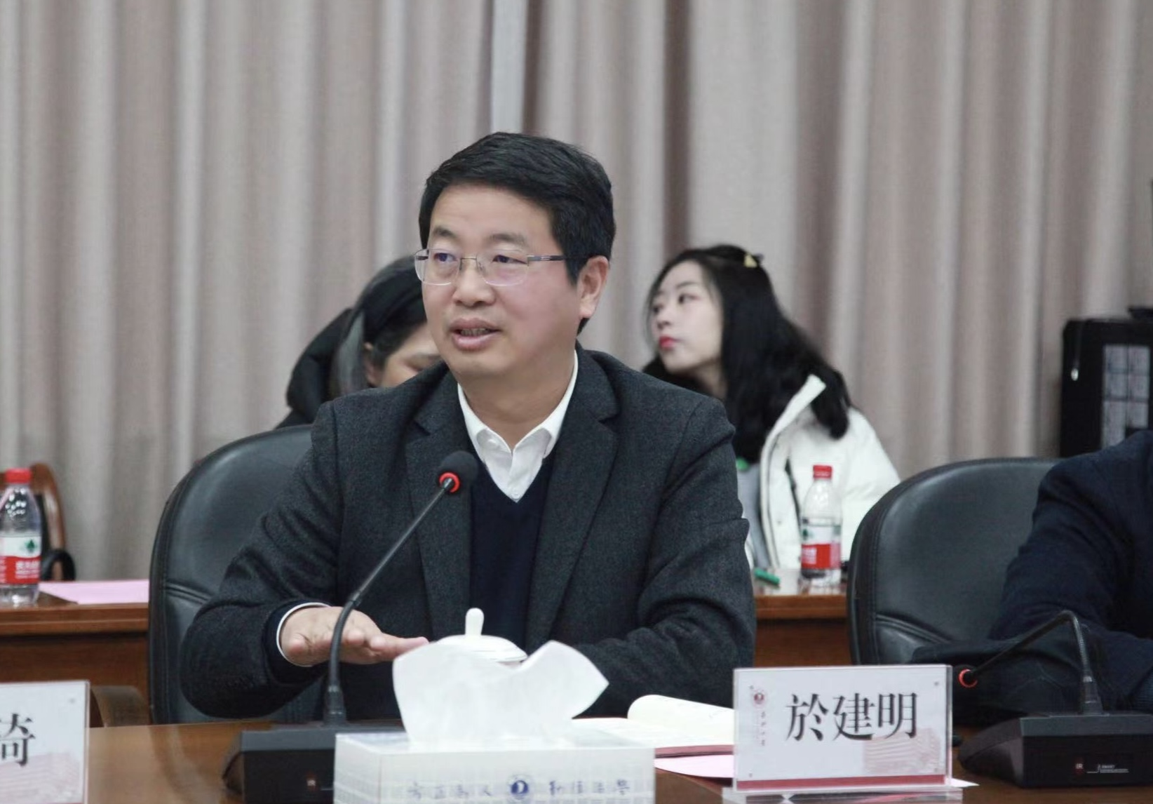 周宏伟副校长、於建明副校长分别就学院发展的硬件支持、资源保障和科研团队建设、基金项目申报、硕士点申报等工作一一回应学院诉求。