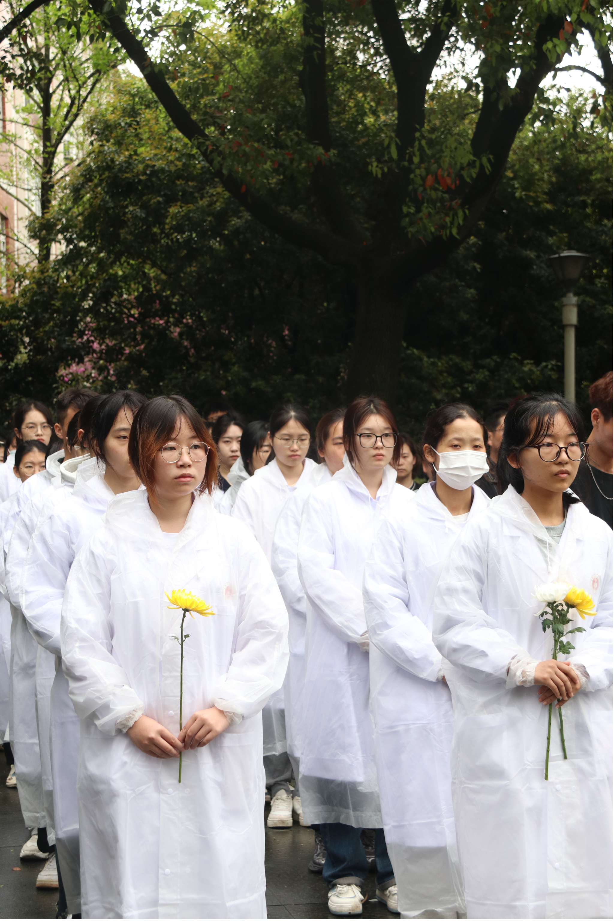 无言教导,掷地有声。截至目前,石碑上已镌刻146位遗体捐献者和167位器官(组织)捐献者的姓名。大体老师用自己的身躯做教材,传授医学生们宝贵的人体知识。“健康所系、性命相托。当我步入神圣医学学府的时刻,谨庄严宣誓:我志愿献身医学,热爱祖国,忠于人民,恪守医德,尊师守纪……”学生代表们紧握右拳,目光坚定,声音嘹亮,用铿锵誓言表达“除人类之病痛,助健康之完美”的初心和使命,刻苦钻研、勤于实践,决不辜负大体老师的殷殷期盼和无私奉献。