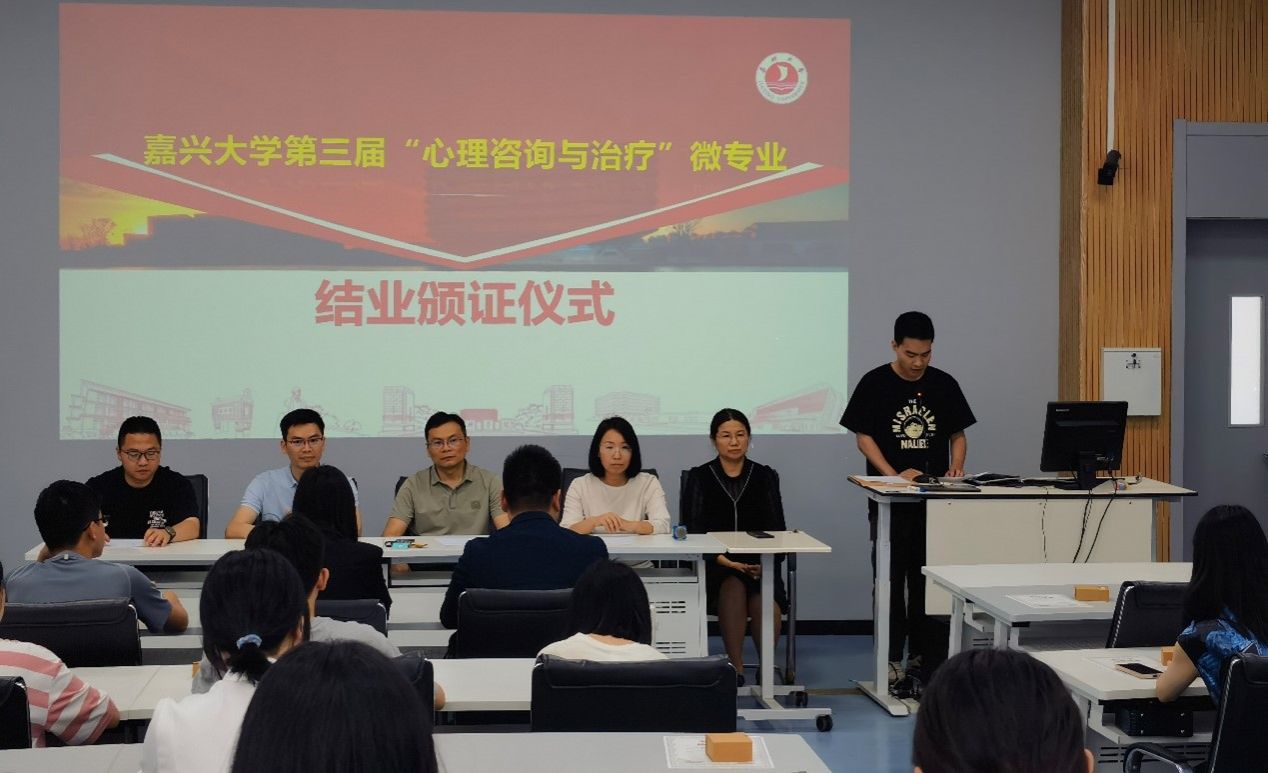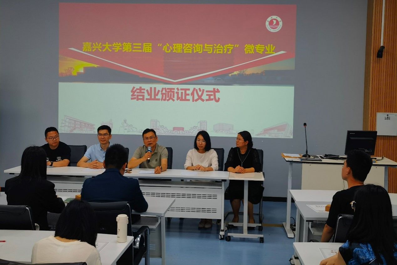 在仪式上王敏对结业的同学们表示祝贺。他强调,微专业不仅能丰富学生跨学科知识的学习,也能为学校的复合型人才培养做出贡献;“心理咨询与治疗”微专业作为学校首个微专业,面向全校学生开课,目前已运行至第5期,学习人数349人,累计结业184人。他鼓励同学们传承和运用所学知识,保持热忱的心态,学好知识,强大内心,投身于未来的学习、工作和家庭,为学校发展和社会进步做出更多的贡献。