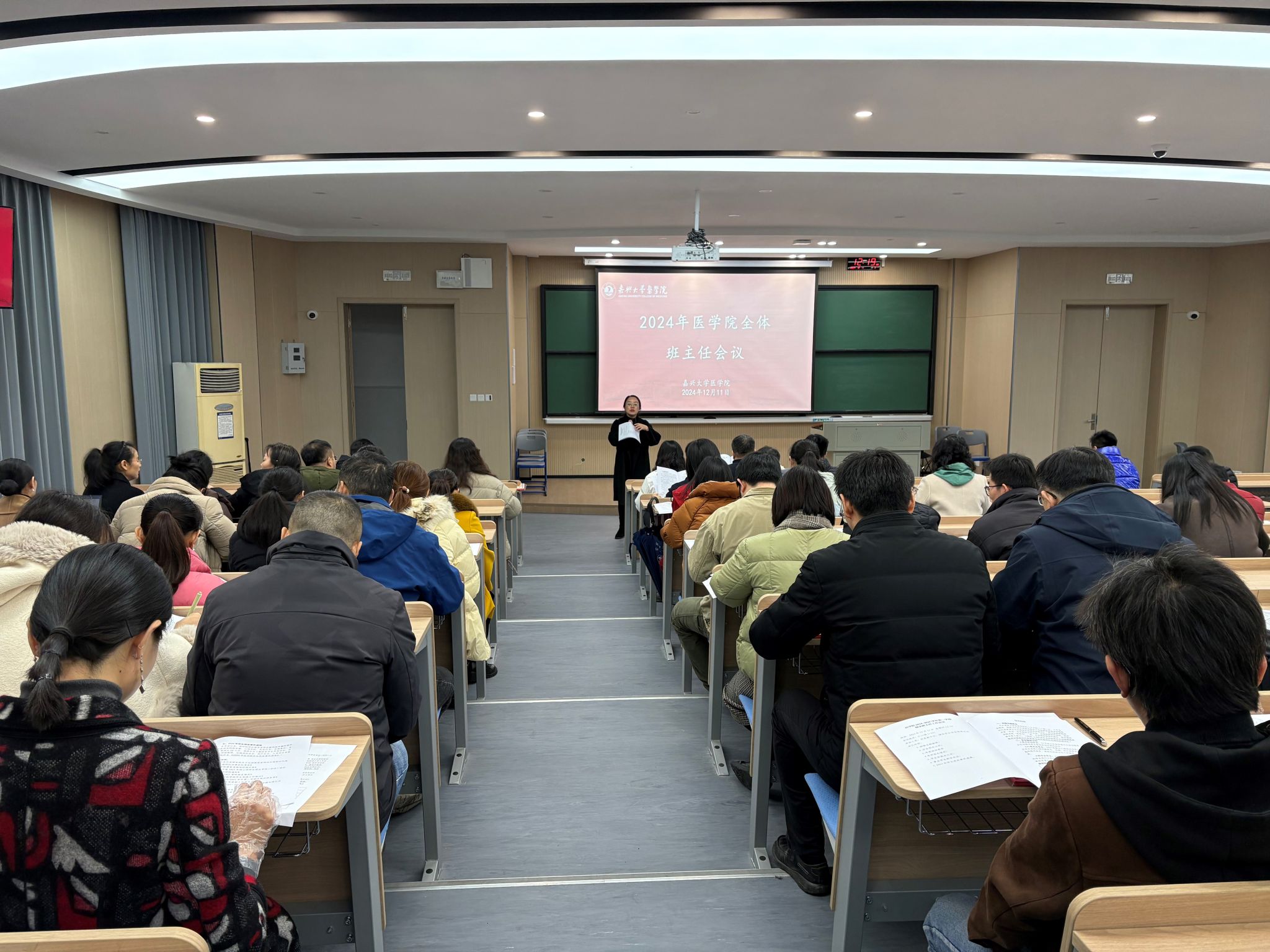 期末班主任工作会议。学院党委副书记朱莹、全体班主任和辅导员参会。