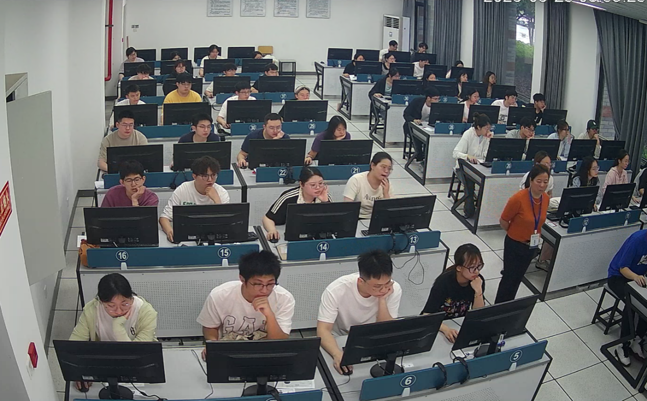 图为学生在参加水平测试理论知识考试机考现场