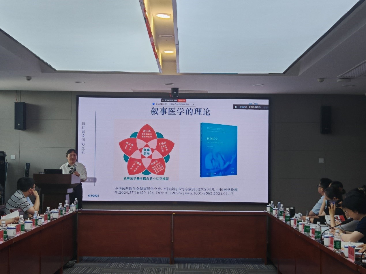 会议邀请了附属新安国院医院副院长殳儆作主题为叙事医学教学专题讲座。对叙事医学理论、平行病历的书写和评价等方面做了深入、细致地分享。
