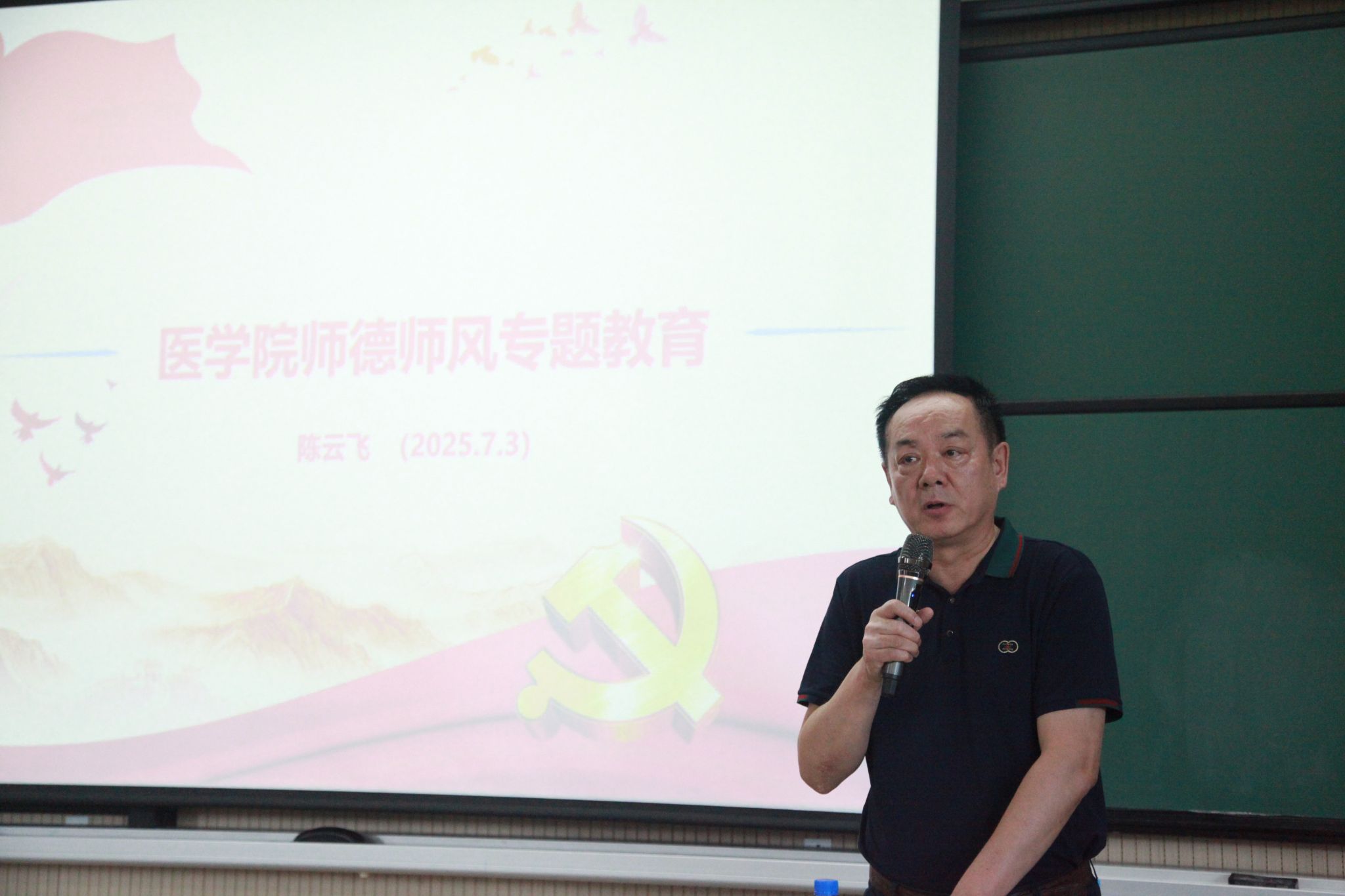 2025年7月3日,中文av 召开师德师风专项警示教育大会。中文av 党委书记陈云飞主持会议并领学了师德师风建设相关文件与精神,结合深入贯彻中央八项规定精神学习教育进行了典型案例剖析。全院教职工参加学习。