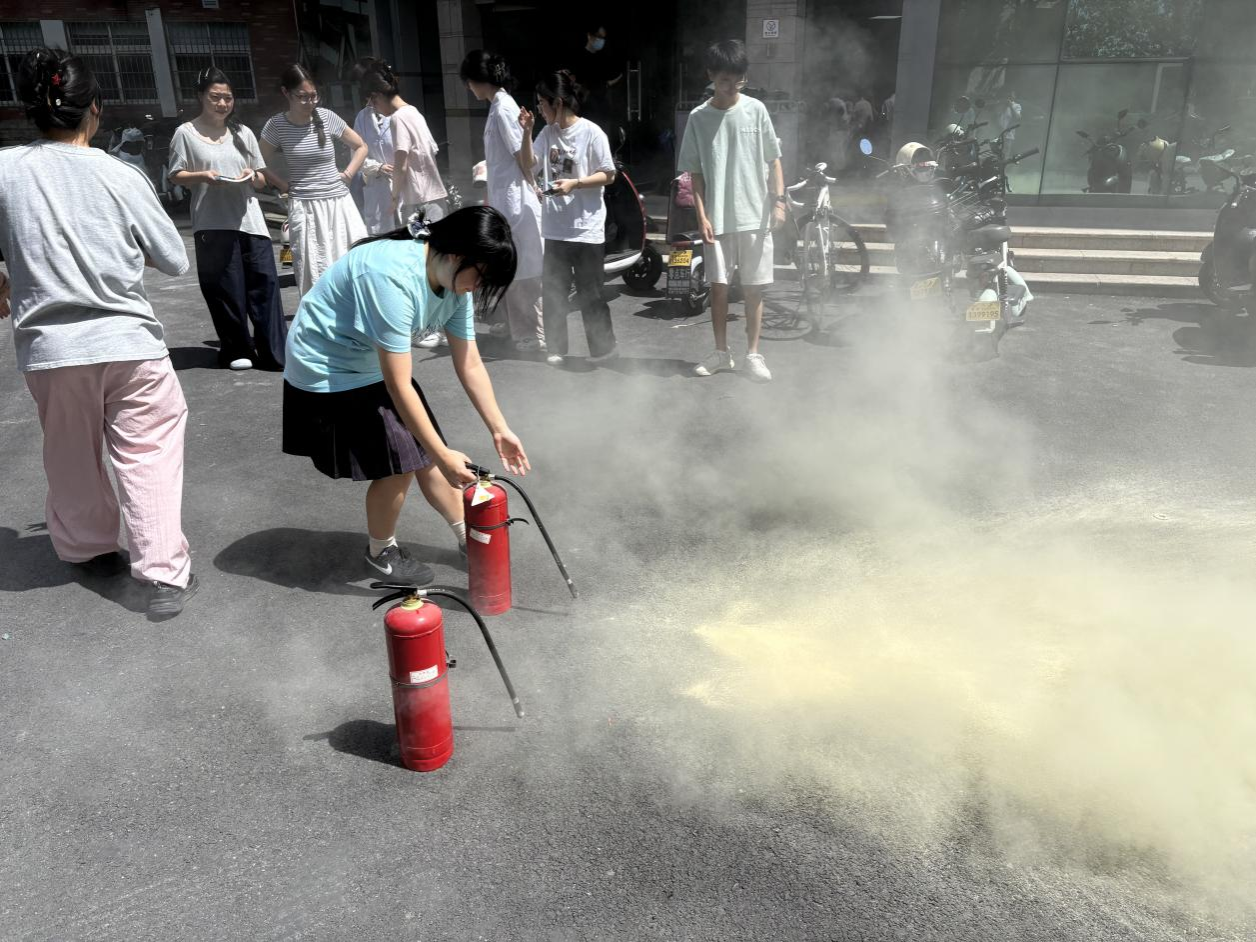 随后,在实验室负责老师的统一指挥下,按照事先规划好的疏散路线,有序、快速向指定的安全集合点撤离。疏散结束后,由老师亲自示范灭火器的使用方法和灭火技巧,让大家牢记“一提、二拔、三握、四压”灭火器操作要领。全体学生轮流进行了灭火器的操作使用。全体参与人员的消防安全意识得到了提升,应急处置能力得到了有效的锻炼。