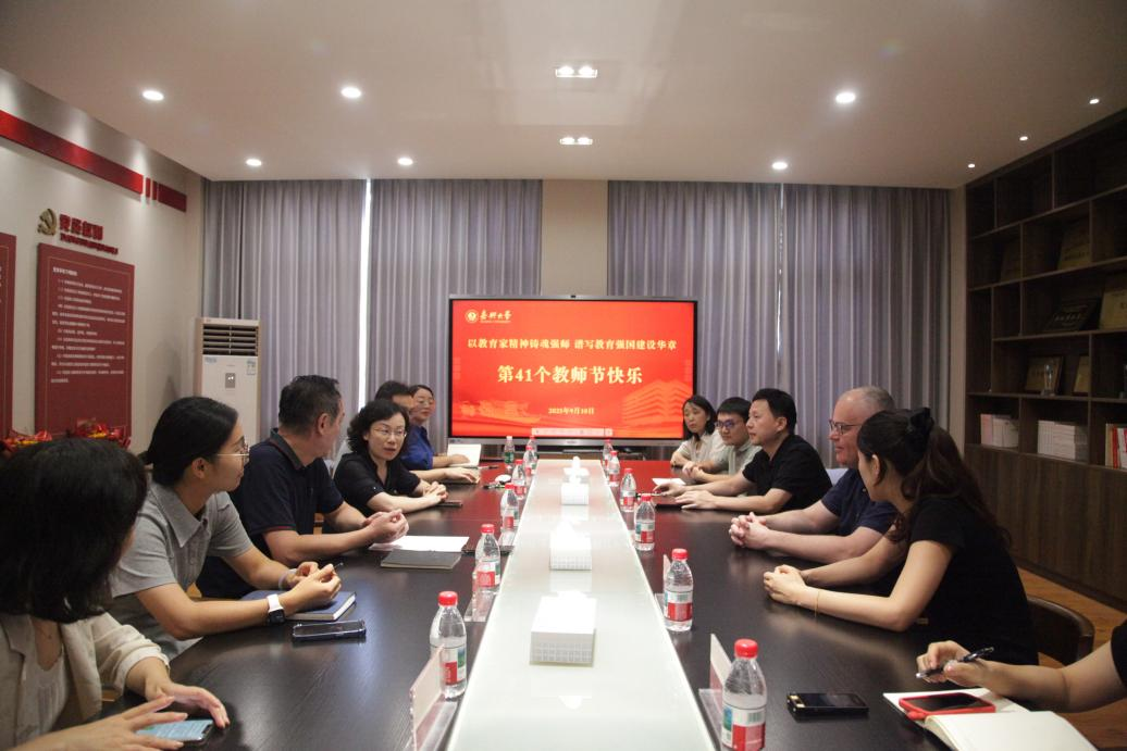 为庆祝第41个教师节,9月10日上午我校党委委员、副校长(主持日常工作)张琦慰问中文av 教师代表。中文av 院长何治、党委书记陈云飞等相关人员参会。